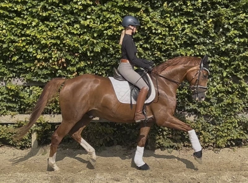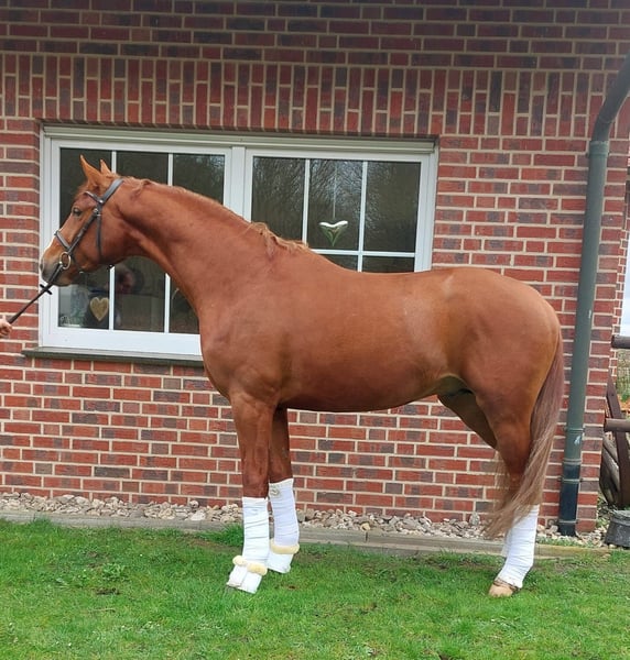 For sale is a 4-year-old chestnut gelding by Benicio x Flovino x Gribaldi directly from the breeder. Balou has been gently trained and can now be presented in dressage horse tests at the A level. The gelding has three excellent basic gaits, is well-behaved in handling, and is very rideable and eager to learn. Since Balou windsucks, he is being sold well below his actual value. If you are interested, please feel free to contact us by phone at 015204105724.