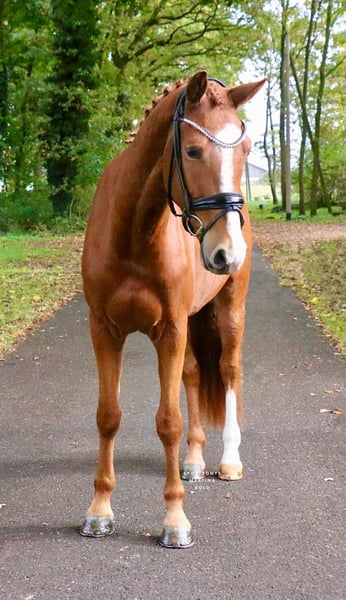 | Advertisement | Location: Recke, 49509 | Hanoverian | Gelding | Chestnut | Born 2021 | 16.1 hh | Sired by Ellis out of Zack We present "Edgar," a promising young sport horse for the grand arena. Besides his attractive appearance, Edgar is equipped with three convincing basic gaits. He spent the summer months enjoying time on the pasture and in the herd, only coming under saddle as a four-year-old. In handling, Edgar is absolutely well-behaved and affectionate. Under saddle, he learns very quickly and strives to please his rider. Even from Edgar’s pedigree, one can expect rideability and willingness to perform. He descends from a line of highly successful sport horses on both sides: his sire Ellis, his dam’s sire Zack, and Don Schufro on the dam’s side, all renowned for their own achievements and their successful offspring. With further development, we see Edgar as a future candidate for advanced dressage. https://youtu.be/EaYYLbF4kfI?si=nuyl2l09oIoVHyVC A radiological examination (X-ray) report is available and shows no abnormalities. For serious inquiries, please contact us by phone at +49 170 7941333.