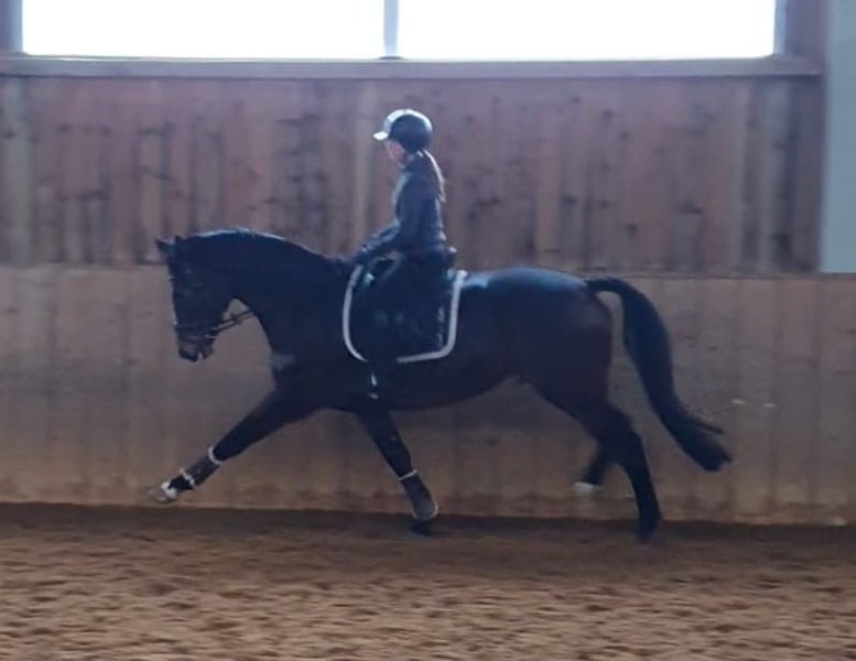 For sale is a promising German sport horse gelding, born in 2018. With his elegant, dark brown coat and an impressive height of 17.4 hh, he offers ideal prerequisites for ambitious dressage competition. He also makes a very good impression over jumps and was highly placed in a combined free jumping and free movement competition. In the video, he is ridden by a 13-year-old young girl, but he is not a beginner's horse, although he is very well-behaved. The gelding is well-trained and demonstrates exceptional talent and good riding qualities in dressage. His rideability, pleasant temperament, and willingness to learn make him a reliable partner for experienced riders looking to further develop their dressage career. He is healthy, regularly dewormed, and up-to-date on all vaccinations. His well-maintained appearance and his performance-oriented nature distinguish him. A horse with great potential, suitable for both competitive riders and ambitious leisure riders. If interested, we look forward to your contact to discuss further details and arrange a viewing.