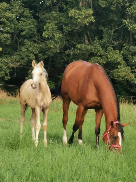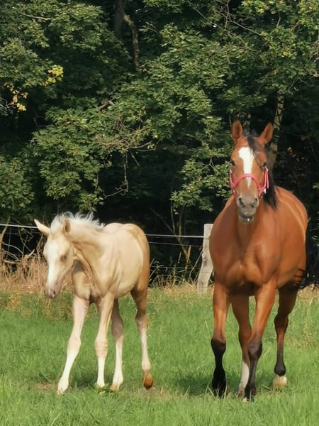DIMAGGIO Se. M. een prachtig gelicenseerde en prestatiegeteste Palomino hengst. Als veulen won hij de voorselectie voor het Duitse Veulenkampioenschap in Lienen op de Kasselmann boerderij. Zijn broer was de winnende hengst op het Ponyforum in 2019 en de duurste veilinghengst. Veel broers en zussen van de moeder zijn verkocht tegen een hoge prijs via de Ponyforum veulenveiling. In 2019 zal de hengst in Vienenburg met zijn eigenaar dekken. Pensioenkosten voor merries zonder veulens 6 € per dag met veulens 8 € per dag Mocht u vragen hebben, neem dan telefonisch contact met ons op