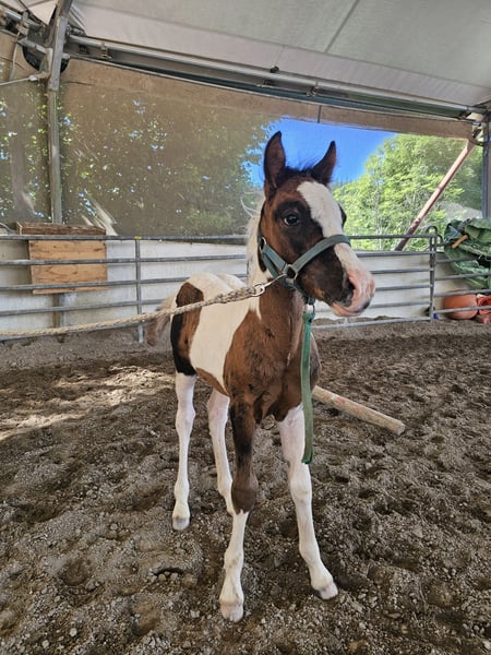 Aufgewecktes Hengstfohlen. Für den Freizeitreiter geeignet. Familienpferd. Prämiert! Erlernt bis zum Auszug das Fohlen ABC. Wächst gesund auf unseren großen Schwarzwaldweiden, im Herdenverband, auf. - gutes Gebäude - lieber Charakter - einfach im Umgang - Papiere beim ZfdP sind beantragt Mutter: Penny (Pony ohne Abstammung) Vater: Ben Hour (Lewitzer Mix siehe Deckhengstanzeige) **Das Betreten des Hofes und der Weiden des Betriebes für Besichtigungen sowie das Reiten von Verkaufspferden erfolgt immer auf eigene Gefahr! Ausschluss jeglicher Gewährleistung! Für das Probereiten unserer Verkaufspferde berechnen wir 50€. Dieser Betrag wird beim Kauf eines Pferdes wieder verrechnet.**