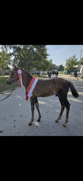 Zum Verkauf steht ein wunderschöner Deutscher Reitpony Hengst, geboren im Jahr 2025. Dieses beeindruckende Pony besticht durch sein elegantes Buckskin-Fell (vom Labor geprüft). Fohlenchampionat - Reservesieger Bundeschampionat 3. Platz Wurde bereits 2x geimpft Tetanus/Influenza und beim Hufschmied vorgestellt. Bei Interesse oder weiteren Fragen stehe ich Ihnen gerne zur Verfügung. Besichtigung nach Absprache möglich.