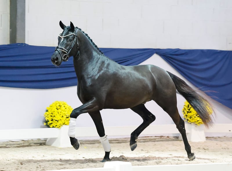 In unserer Kollektion stehen streng selektierte Youngster f�r alle Anspr�che: Ausbildungs-, Zucht- und Kinderponys Hier gelangen Sie zur Gesamtkollektion: https://ponyforum.auction Mit dem gekörten Rapphengst Venustas Cool Design steht ein hochnobles Nachwuchspony mit außergewöhnlicher Bewegungsgüte auf Platz 1 unserer Kollektion! Ein moderner Junghengst, dessen großzügige Bewegungsabläufe mit denen eines Warmblutes zu vergleichen sind. Elegant und leichtfüßig, mit viel Takt und hohem Grundschwung setzt sich dieser beeindruckend aufgemachte Hengst in Bewegung. Venustas Cool Design überzeugte die Weser Emser Körkommission auf ganzer Linie und erhielt bei der Hauptkörung in Vechta den begehrten Körtitel. Hocherfolgreich ist auch seine Verwandtschaft, sein Vater wurde als Körungsreservesieger herausgestellt und sein Vollbruder wurde zum Prämienhengst gekürt. Eine top Offerte für den anspruchsvollen Dressurausbilder!