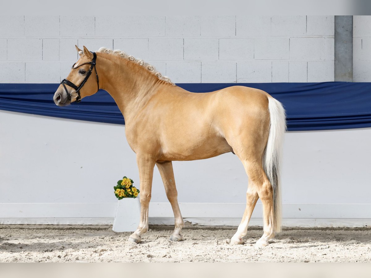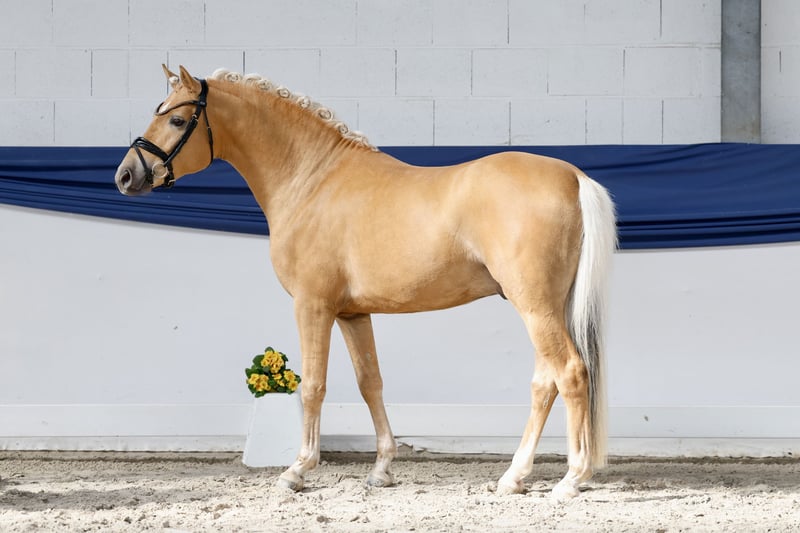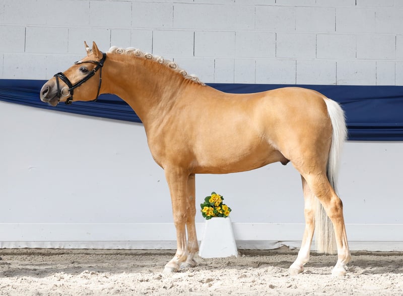 In unserer Kollektion stehen streng selektierte Youngster f�r alle Anspr�che: Ausbildungs-, Zucht- und Kinderponys Hier gelangen Sie zur Gesamtkollektion: https://ponyforum.auction Time to shine! Was für ein kleiner Strahlemann, dieses Pony fällt direkt ins Auge. Descarados ist allein in Punkto Farbgebung und Typausprägung ein besonderes Pony. Aber auch seine Gesamtqualität ist schon „ausgezeichnet“, denn der schöne Palomino wurde im vergangenen Herbst in Vechta bei der großen Körung des Weser Emser Ponyverbands gekört und sogar als Prämienhengst im Endring ausgerufen! Sein Vater Dancing Snowflake ist aktuell erfolgreich in Aufbauprüfungen, er ist ein Sohn des S-Seriensiegers Dating AT NRW. In seinem klar doppelt veranlagten Mutterstamm stehen mit Magnum, Nantano und Durello echte Stempelhengste der Deutschen Reitponzucht, die sicherlich maßgeblich an der sportlichen Entwicklung dieser Rasse beteiligt waren oder durch ihre Nachkommen auch immer noch sind. Ein vielversprechender Junghengst, der direkt in die Ausbildung unter dem Sattel starten kann.