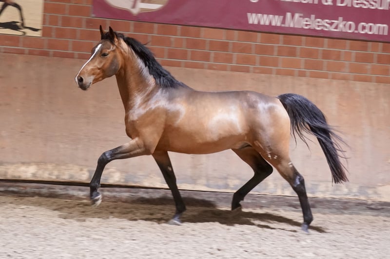Vends un étalon de poney de dressage allemand – Parfait pour la compétition ! Nous proposons à la vente un magnifique étalon de poney de selle de couleur baie, né en 2023. Avec une taille au garrot de 147 cm, il est idéal pour les cavaliers ambitieux à la recherche d’un cheval talentueux et prometteur. Sa silhouette élégante et sa grande envie d’apprendre en font un partenaire très prometteur pour le dressage. Il réalise avec aisance et talent ses exercices de saut en liberté. Pour toute question ou information complémentaire, je suis à votre disposition. Une visite peut être organisée sur rendez-vous. Joli jeune talent pour la reproduction et la compétition ?