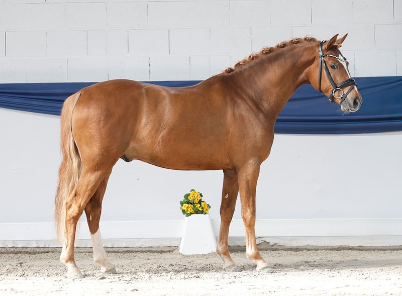 In unserer Kollektion stehen streng selektierte Youngster f�r alle Anspr�che: Ausbildungs-, Zucht- und Kinderponys Hier gelangen Sie zur Gesamtkollektion: https://ponyforum.auction Champagner für Alle! Hier kommt Dom Perignon II, ein echter Hochkaräter. Er lässt mit seinem großzügigen Bewegungsablauf schon jetzt erahnen, was hier für ein geniales Dressurpony auf seinen Ausbilder wartet. Mit einem top Auftritt anlässlich der Westfälischen Reitponykörung konnte er die Kommission überzeugen und erhielt das positive Körurteil. Neben seiner hohen Gesamtqualität fiel besonders sein positives Interieur ins Auge! Schon sein älterer Vollbruder Dom Perignon wußte zu begeistern, er war umjubelter Prämienhengst der Ponyforum Hengsttage 2023 und wurde als Preisspitze zu einem der erfolgreichsten Ausbildungsställe Deutschlands verkauft. Leider verunglückte dieser Hengst früh und konnte die hohen Hoffnungen, die neben seinen Besitzer auch zahlreiche Ponyzüchter hegten, nicht mehr erfüllen. So ist es nun an Dom Perignon II, das Erbe der hocherfolgreichen Eltern anzutreten! Vater Dimension AT war selbst hocherfolgreich und konnte u.a. die Titel des Körsiegers und sogar zweimal des Bundeschampions sammeln. Dom Perignon IIs Mutter ist eine Vollschwester zu dem Siegerhengst, Bundeschampion und HLP-Sieger Dance Star AT und auch des EURO-Ponys Der Feine Lord AT. Direkt vom Züchter.