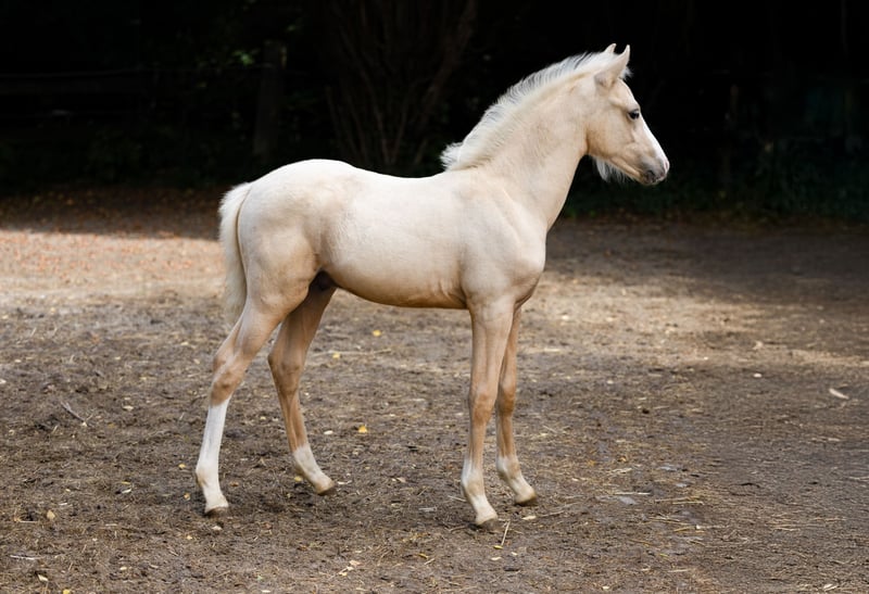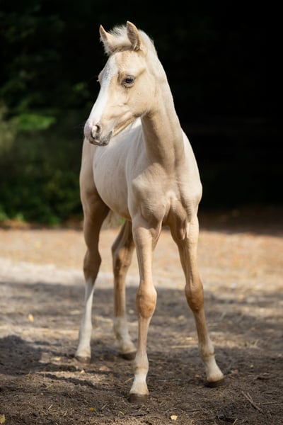 Hero of the Heart. Hier ist der Name Programm. Super süßes Hengstfohlen vom Herzgold D (westfälischer Siegerhengst des Bundeschampionats 2023) aus einer Quaterback's Junior Mutter. Der charmante kleine Kerl besticht durch seine chicke Erscheinung und sein bezauberndes Wesen. Geboren ist er am 21.6.2025.