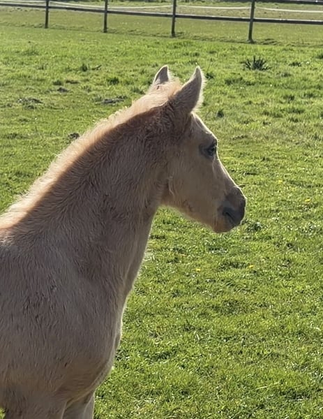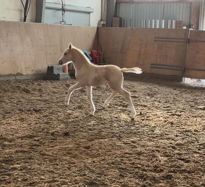 Dieser Palominohengst ist voller Freude : Hallo ich bin noch jung , aber ich bin schon recht selbstbewusst . Angst habe ich nicht - ich trabe auf dem Weg zur Weide gern vorweg ! Mit macht es soviel Spaß mich zupräsentierenn- the Show must go on - ich habe sehr viel Takt und „ Riss“ - dh ich zeige mich immer in Angebermanier - warum - weil es mir Spaß macht und ich so toll traben kann 😄😉 Aber auch mein Galopp ist sehr eindrucksvoll und immer bergauf ….. Jaaaaa ich möchte ein Hengst werden - zur Körung … Seht - schaut her - so bin ich . Da ich meinen Schwerpunkt wohl inder Dressur habe und ich überall gut sein möchte - übe ich auch schon mal das Springen …, Luftsprünge machen einfach Spaß . Zum Glück bin ich immer auf der Weide - wenn wir aus dem Stall zur Weide gehen , dann platze ich fast vor Freude . Herrlich - ich liebe das Leben . Wer mich kaufen möchte wird sicher viel Freude an mir haben und dann rocken wir das Viereck zusammen , wenn ich groß bin 🏆