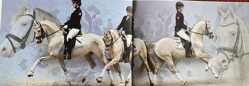 Cashcode ist ein Sohn des Caramel WE ,Siegerhengst Landeschampion und Bundeschampion - seine Mutter Carla eine Tochter des FS Champion de Luxe x FS Don’t Worry aus einem hochdekoriertem Stutenstamm ,dem auch zahlreiche international erfolgreiche und prämierte Sportponys entspringen. Cashcode wurde auf der Körung des Ponyforum gekört und ist bundesweit anerkannt. 2021 siegte er in Reitpferdeprüfungen gegen Großpferde- für die Rittigkeit erhielt er die 9,0 2021 platzierte er sich im Finale des Westfalenchampionates -Teilnahme Bundeschampionat HLP -in Münster Handorf mit der besten Rittigkeitsnote aller Teilnehmer - er wird Leistungshengst 2022 Erfolge in Dressurprüfungen Kl.A und Qualifikation zum HKM Bundeschampionat 2023 Auf der Bundeshengstschau der Deutschen Reitponys in Berlin wurde er mit einem 1 d Preis ausgezeichnet und konnte sich als bester Westfälischer Ponyhengst in seiner Altersklasse im Dressurwettbewerb platzieren. Cashcode gewinnt 2023 zwei Finalqualifikationen zum HKM Bundeschampionat des 6 jährigen Dressurponys . Auch gegen Grosspferde platzierte sich Cashcode in Dressurprüfungen der Klasse L. Die erste FEI Platzierung untermauerte seine Erfolge -auch hier war es Kiana Joy Hoyer die seit 2022 im Sattel des charmanten Perlinos sitzt ,und diese Erfolge möglich machte. Im Jahr 2024 erzielte das Paar zahlreiche Erfolge in der Klasse L. 2025 - M Dressur platziert Seit vier Jahren deckt Cashcode und ist auch 2026 über das Landgestüt Celle über Frischsamen verfügbar. Seine Fohlen sind nicht nur wunderschön ,sondern auch sehr bewegungsstark.Seine ersten Nachkommen sind nun unter dem Sattel und unsere Erwartungen sind vollends erfüllt worden-die Rittigkeit seiner Kinder ist beispielhaft bei allerbesten Interieurwerten-echte Traumponys. Cashcode vererbt sich sehr konstant bei stets korrektem Fundament, toller Farbvielfalt und herrlicher Typausprägung. Cashcode ist auch für die Warmblutzucht zugelassen und wird auch häufig für Warmblutstuten eingesetzt ,die Fohlen sind ausnahmslos sehr gelungen. Cashcode war auch 2024 sehr gefragt und seine Fohlen begehrt. Cashcode besitzt das doppelte Creme Gen ,hat bisher aber noch keine Nachkommen mit blauen Augen gebracht. Die Farben sind über Palomino ,Buckskin und Falben mit schönen Abzeichen in herrlicher Aufmachung vertreten. Seine Bewegungsgüte und sein Springvermögen machen ihn zu einem doppelt veranlagten VERERBER mit dem gewissen Extra. 2025 platzierte sich Cashcode in der Klasse M mit Kiana ❣️ Samenbestellungen über das Landgestüt Celle -Besamumgsstation Verden oder Frau Susann Heise