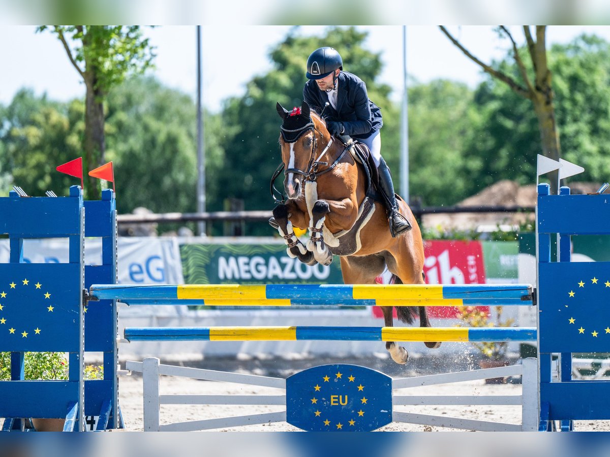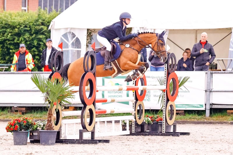With a heavy heart, we have to part with our 9-year-old pony mare "Meine Alexa" due to the end of our daughter's "pony era." She is a true sport pony. She loves competing at shows and always gives her best in the arena. As a young pony, she already made a name for herself by participating in the Bundeschampionat. Among the six-year-old ponies, she reached the finals. She has been placed with our daughter up to L-level, and they have also enjoyed success internationally. Since our daughter has not yet gained experience in the M-class, we decided this spring to have Alexa introduced to the class with the help of a young professional rider at competitions to ensure proper development. This approach proved to be very successful. Alexa was able to win L jumping classes and confidently complete her first rounds in the M-class. She holds the FEI Lifetime Measuring Certificate and is 1.48 meters tall. Of course, she has an international passport. We wish for Alexa to find a home where she will be valued and pampered just as she has been with us. It is important to her to have daily turnout in the form of pasture/paddock or lunging. She is accustomed to this routine. There are no health issues whatsoever. Further information, videos, or to arrange a viewing, please contact 0151 61523331.