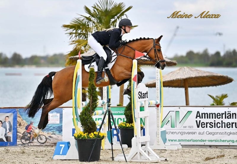 Z ciężkim sercem musimy się rozstać z naszą 9-letnią kucykową klaczą „Meine Alexa”, ze względu na zakończenie „półjuniorowego” etapu jej życia, który był dla naszej córki niezwykle ważny. Jest to koń sportowy przez i przez. Uwielbia jeździć na zawody i zawsze daje z siebie wszystko na parkurze. Już jako młody koń wyróżniła się udziałem w Mistrzostwach Federalnych, gdzie w kategorii kucyków 6-letnich dotarła do finału. Wspólnie z naszą córką osiągnęła sukcesy na poziomie L, a także odnosiła sukcesy na arenach międzynarodowych. Ponieważ nasza córka jeszcze nie ma doświadczenia w klasie M, na wiosnę tego roku zdecydowaliśmy się, aby Alexa była dodatkowo prezentowana na zawodach przez młodego jeźdźca, co okazało się niezwykle skuteczne. Alexa zdobyła zwycięstwo w skokach na poziomie L i pokazała pierwsze pewne rundy w klasie M. Posiada certyfikat FEI Lifetime Measuring Certificate i ma 1,48 m wzrostu. Oczywiście, posiada również międzynarodowy paszport. Życzylibyśmy Alexa domu, w którym będzie tak samo ceniona i rozpieszczana, jak u nas. Dla niej ważny jest codzienny wyjazd na pastwisko/paddock lub wędzidło na lonży – zna to od zawsze. Nie występują żadne problemy zdrowotne. Dodatkowe informacje, filmy lub umówienie się na oględziny chętnie pod numerem 0151 61523331.