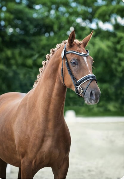 German Riding Pony Mare for Sale For sale is a beautiful German Riding Pony mare, born in 2016. She is an elegant chestnut. This broodmare impresses with her excellent pedigree, her gentle temperament, and her good basic gaits. She is in foal to Den Haag, due in May 2026. Please feel free to contact me for further information or if you are interested.