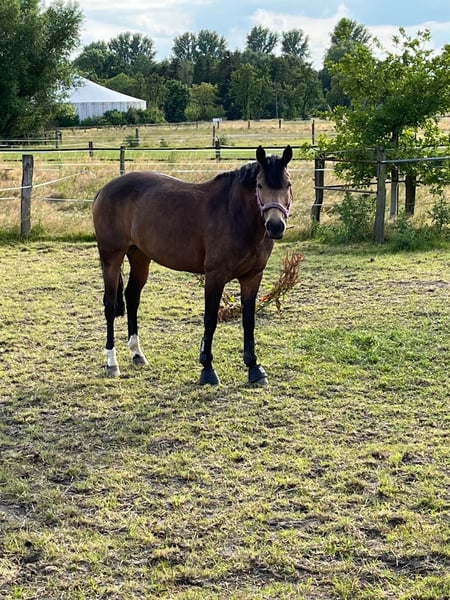 Liebes Pony mit Go, hat unsere Kinder vom Reiter-, Dressurreiter-, Springreiterwettbewerb bis hin zu Springen in der Kl. A* begleitet und platziert. 5jährig hatte sie ein Stutfohlen von Gigabyte. Da die Kinder zu groß geworden sind, müssen wir uns leider von "Grace of Glory" trennen.