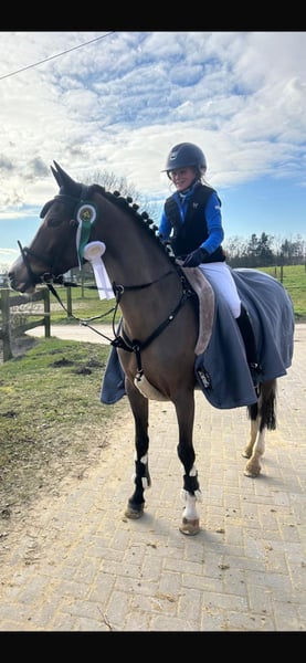 Te koop staat een elegante en prachtige Duitse rijpony- merrie, geboren in 2013. Vanwege een peesblessure rijdt ze momenteel niet in de sport en is ze drachtig van Mylord Manolito. My Hetty overtuigt verder door haar uitstekende pedigree, met vader Magic Cornflakes en MV Top Star. Ze valt op door haar springtalent en haar vriendelijke omgang. Ze heeft altijd zeer goed gepresteerd met kinderen, vooral met jongere kinderen. Tijdens haar dracht geneest de peesblessure uiteraard volledig. Als ze weer in de sport komt, zullen we haar eerder in de WBO-klasse zien, om haar benen niet te overbelasten. Dit is Hetty’s eerste veulen. Bij interesse en voor meer informatie ben ik graag bereikbaar.