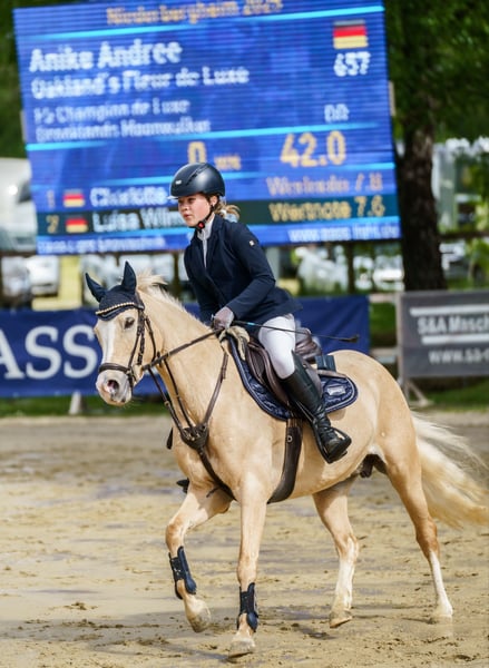 15 jährige brave Reitponystute von Champion de luxe x Moonwalker. Brave Reitponystute auch züchterisch interessant. Staatsprämienstute mit sporterfolgreichen Nachkommen. E-Springen gewonnen, A Dressur platziert. Informationen ausschließlich telefonisch. 017673525290