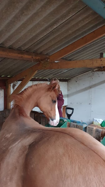 Wegen krankheitsbedingter Zuchtaufgabe - Zuchtstute - ganz besonderer Abstammung: 14-j Fuchsfalb-Stute, 147 cm. Springen L**-national zahlreiche Siege (Dänemark) – A-Dressur mehrmals platziert, aber interessehalber nicht weiter gefördert und jezt verletzungsbedingt jetzt (wirklich!) nicht mehr reitbar. Video aus 2021: https://youtu.be/5HHslqVWGMg?si=JUl-fKOeItg40qNi Vater: Elitehengst Heidberg‘s Nancho Nova, der, u.A., Vater des zweifachen Bundeschampions, Noir de Luxe, war. Weiter hinten dann die „Jahrhundert-Hengste“, Golden Dancer (MV) x Dornik B (UGV). Also eine ganz besondere Abstammung! Die Stute, Lady Nova, ist in Schleswig-Holstein (als Siegerstute) - mit guten Noten eingetragen und hatte 2024 ihr erstes Fohlen – ein ganz tolles Stütchen, dass beim Fohlenschau mit 9 für Typ und GGA und die Fohlenprämie bewertet wurde (für 5.5verk.). Video, Fohlen, 2024: https://youtu.be/YKgZP__vj1g Dieses Jahr hatte sie weiteres SF, 4/5 geb., v. westfälischen Reservesieger, 2008, HF Metropol (Sportname, FB Gangster). Das Fohlen wurde Sieger-SF und Reservesieger des Tages bei der Fohleneintragung (Noten: 9-7-8-8) ob wohl am Tag sehr "im Wachstum). Videos, Fohlen, 2025 hier: https://www.ridehesten.com/salgsheste/fredens-nadia-nadim/229516 Die Stute zieht Luft rein und ist (Cashlick-)genäht, aber hat beide Jahre problemlos aufgenommen (erstes Fohlen = erster Besamung, zweites Jahr beim zweiten Versuch, und das mit TG). Wegen Zuchtaufgabe ist sie dieses Jahr NICHT besamt. Sie kann gerne hier auf Koster des Käufers besamt werden. Standort Dänemark. Transport der Stute nach Deutschland gegen Dieselkosten möglich. Bitte nur ernstgemeinte Anfragen.