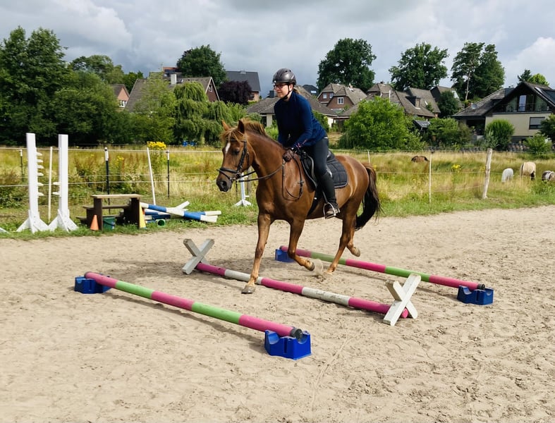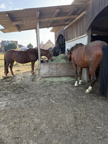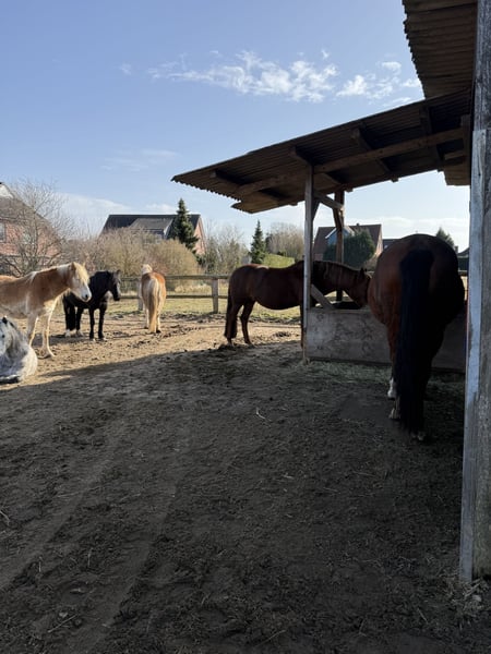 Wir verkaufen unsere 19jährige yzauberhafte Ponystute Starlights Beauty bei uns liebevoll Püppi genannt. Sie ist 1,44m, hatte 2023 ein Fohlen und ist ein Verlasspony mit der eindeutigen Vorliebe fürs Gelände. Sie gehört uns privat, läuft seit 2020 bei uns im Schulbetrieb. Nun möchten wir sie aber in private Hände geben wo sie die Aufmerksamkeit bekommt, die sie verdient, denn sie ist eine Seele von Pony. Sie muss vorne beschlagen werden, aufgrund von „Plattfüßen“. Röntgenbilder vom Sommer liegen vor, ebenso des linken Knies und Sprunggelenkes. Erste Jahreshälfte 2025 chiropraktisch und osteopatisch durchgecheckt, Zähne würden auch im ersten Quartal 2025 gemacht. Püppi kennt Offenstall und Box, legt sich nachts gerne in der Box oder im Unterstand hin. Sie mag keinen engen Kontakt zu anderen Pferden, da legt sie die Ohren an und kickt teilweise. Das ist auch der einzige Grund des Verkaufs: alleine auf dem Platz ist sie ein Traum. Mit 3-4 Pferden durcheinander geritten wird sie gestresst. Sie ist eher ranghoch. Aktuell ist unser neuer Noriker Chef der Herde und gibt ihr Sicherheit. Auch unsere 2jährigen sind kein Problem. Keine Rehe oder Ekzem. Laut Tierarzt ist ihr Rücken für 19 Jahre sehr gut und ihre Gelenke ebenso. Muss natürlich weiter trainiert werden. Gerne möchte ich sie an einen Erwachsene abgeben wo reiten nicht im Vordergrund steht, sondern das Pony, denn sie verdient ihren Herzensmenschen, nachdem sie so vielen Kindern das Reiten beigebracht hat. Um ihr Reittourismus zu ersparen, bitte ich um eine kurze Vorstellung bei Kontaktaufnahme: Alter und kurze Vorstellung der eigenen Person, was hat man mit dem Pony vor, wo und wie würde sie wohnen. Sie ist ein kräftiges Pony, aber kein Gewichtsträger, der mal eben 70kg plus Equipment schafft mit einem unsusbalancierten Reiter Bei Fragen gerne melden.