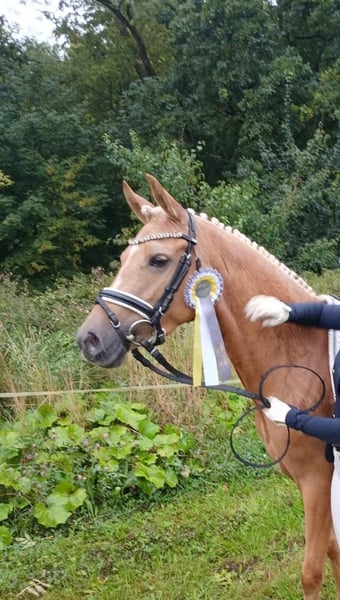Zum Verkauf steht eine 3 jährige Reitponystute mit super Grundgangarten direkt vom Züchter aus einem erfolgreichen Stutenstamm. Die Stute ist in Westfalen als Staatsprämienstute ausgezeichnet worden, dabei wurden alle 3 Grundgangarten mit einer Wertnote von 8.5 bewertet. Aktuell ist sie in Reitpferdeprüfungen gegen Großpferde hoch platziert. Sie hat zur Zeit ein Stockmaß von 1.44 m. Hier wächst ein Dressurpony für den gehobenen Ponysport heran. Bei Interesse melden Sie sich gerne unter 015204105724