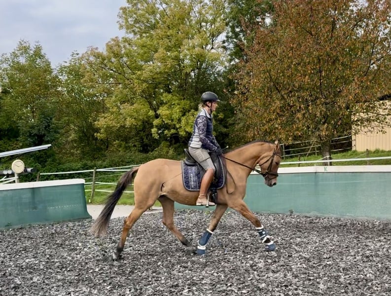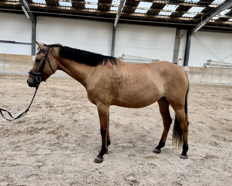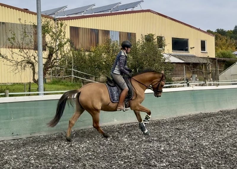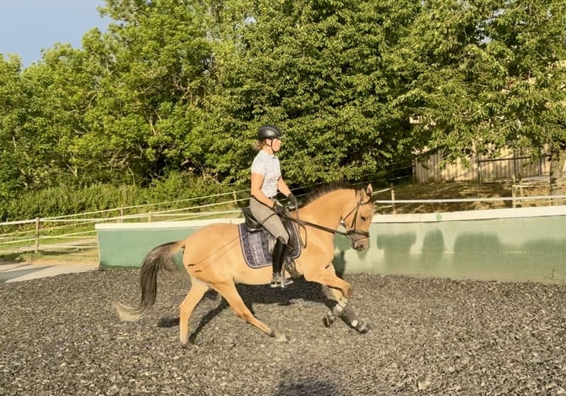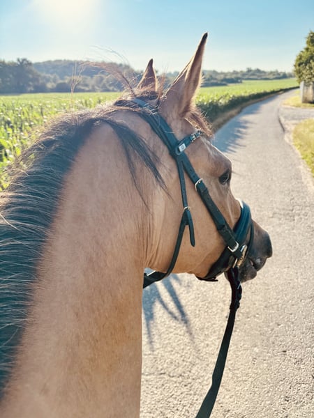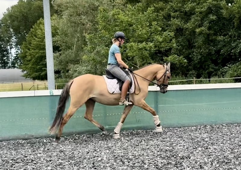 Biete 3jährige Dt. Reitpony Falbstute v. Dimension AT x Champion de Luxe zum Verkauf. Mit bester Genetik ausgestattet zeigt sie sich schon sehr ausbalanciert unter dem Reiter und lässt sich brav in allen GGA reiten. Raumgreifende GGA und ein ruhiger und selbstbewusster Charakter machen den Weg ins große Viereck bestimmt leicht. Ihr Halbbruder Lilienhofs Donelli ist siegreich bis Kl. S. Sie lässt sich unkompliziert verladen, geht alleine ins Gelände, kennt Halle und Außenplatz. Sehr menschenbezogen und verschmust sowie verträglich in der Herde. Mit derzeit 152 cm Stockmaß perfekt auch für Erwachsene. Auf Grund des Alters kein Anfänger- oder Kinderpony! Durch ihren sanften Charakter jedoch auch jetzt schon fürs „Mitreiten“ von Kindern an der Hand oder Longe geeignet. Große AKU (Röntgenbilder inkl. Rücken) ohne Befunde bereits vorhanden. Weitere Videos auf Anfrage.