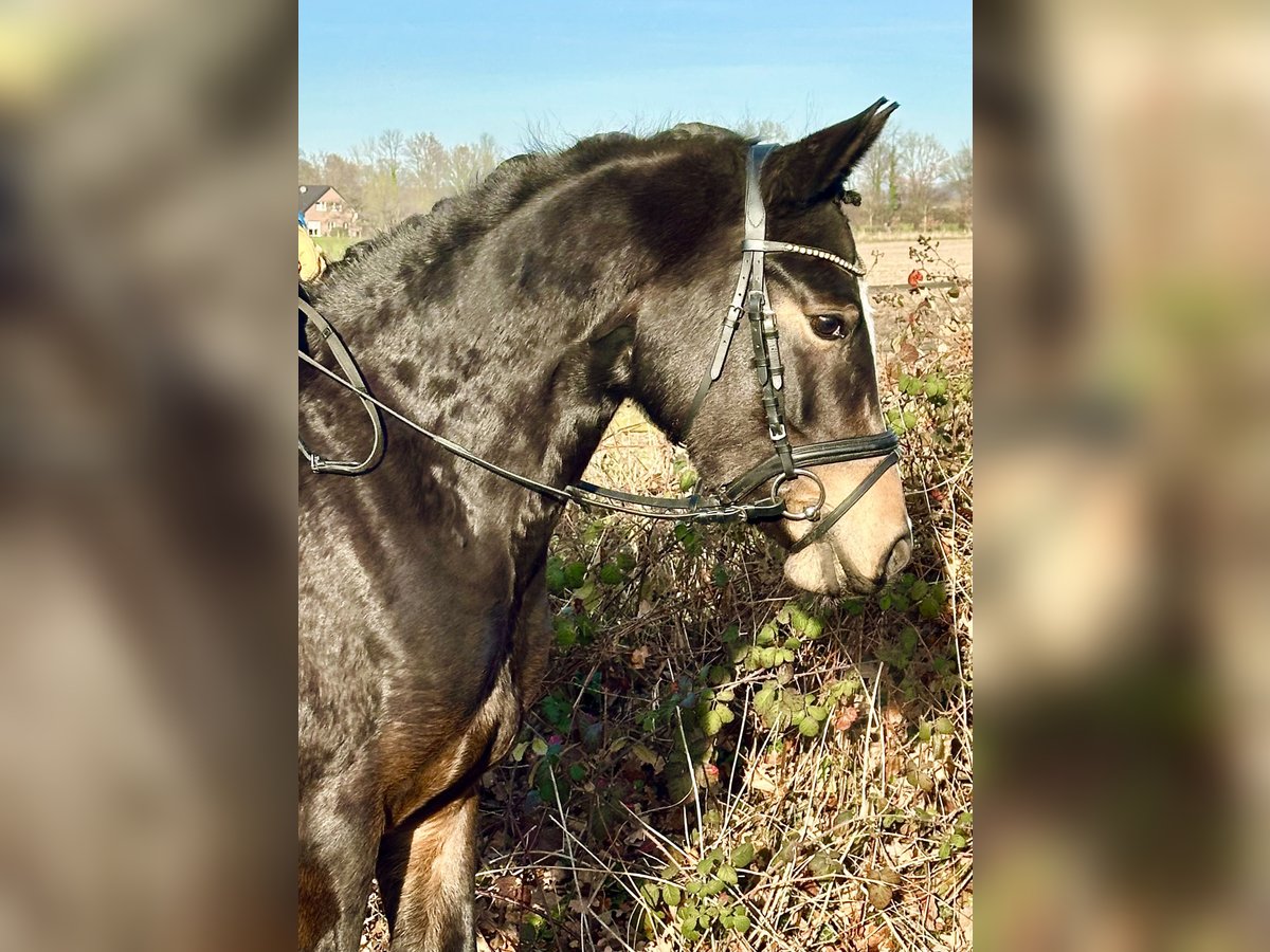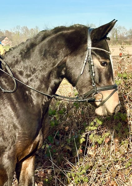 Wir verkaufen hier unsere hübsche, dunkelbraune Reitpony-Stute, geboren im Mai 2022. "Nala" (eingetragen "Mellimaras Jassari") ist 1-jährig zu uns gekommen und hat dann zwei Sommer auf der Wiese verbracht. Danach wurde sie mit viel Ruhe von einer erfahrenen Reiterin ausgebildet. Sie ist sehr brav im Umgang sowie auch beim Reiten. "Nala" ist seit ein paar Monaten unterm Sattel und lernt total schnell dazu. Neben der Dressurausbildung hat sie auch bereits erste Sprünge absolviert - auch das macht sie super. Sie ist im Gelände sehr ruhig und zuverlässig - sowohl allein als auch zusammen mit anderen Pferden. Auch in neuen, unbekannten Situationen bleibt sie total gelassen. Durch ihren sehr verlässlichen Charakter ist sie sicher auch von Kindern schon zeitnah gut reitbar. Bei Interesse oder Fragen jederzeit gern melden :)