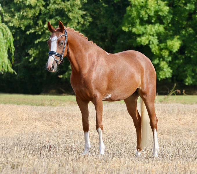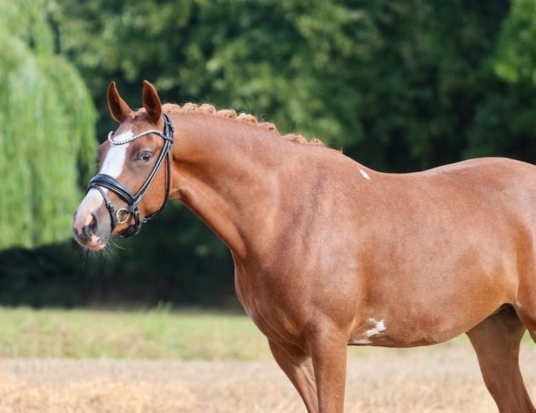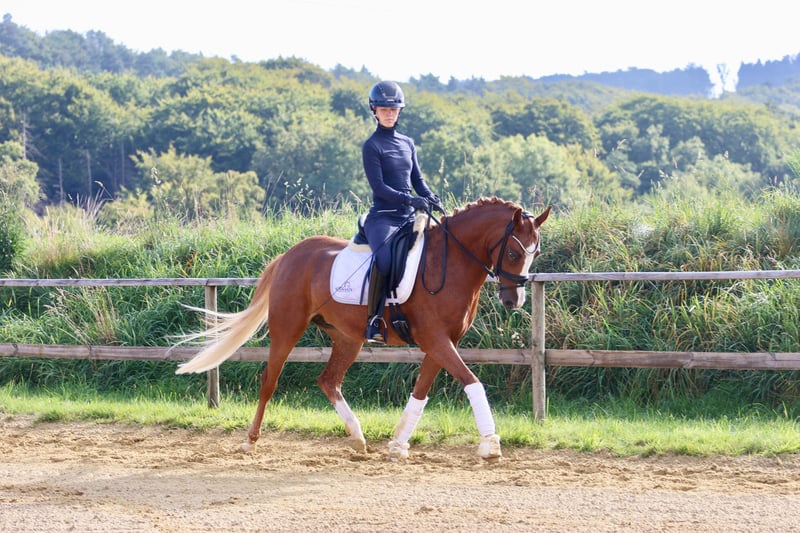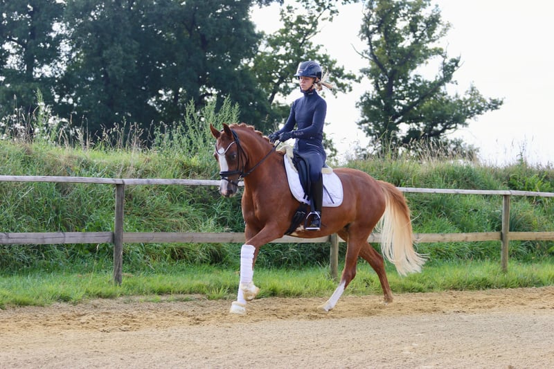 DRESSURPONY MIT PERSPEKTIVE! Diese bildschöne, typvolle und brave Reitponystute verfügt über 3 gute GGA. Sie zeigt sich sehr leichtrittig und lernwillig und konnte sich bereits in einer A Dressur platzieren. Anfang des Jahres mit 145cm gemessen, bleibt also sicher im Ponymaß. Aufgrund des Körperbaus deckt das Pony auch größere Reiter gut ab. Ideal für ein Mutter/ Kindgespann, ein ambitioniertes Kind mit passender Unterstützung oder aber auch, für einen kleinen Erwachsenen. Das Pony wird ausschließlich als Reitpony verkauft! Sie eignet sich nicht als Zuchtstute, weitere Erläuterung gerne im persönlichen Gespräch. Aktuelle Röntgenbilder obB sind vorhanden.