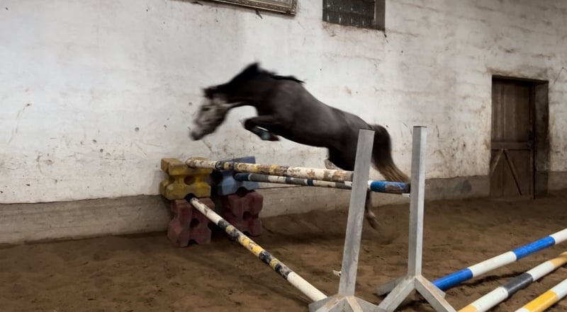 Barbie Springtalent mit Charme – 6-jährige Apfelschimmel-Stute (143cm) Diese wunderschöne Ponystute ist nicht nur ein echter Hingucker mit ihrem süßen Ausdruck, sondern bringt auch sportlich alles mit: 6 Jahre jung, ca. 143 cm groß und mit Top-Abstammung (Blitz und Donner × Quaterbacks Junior). Bereits letztes Jahr war sie brav auf zwei kleinen Dressurturnieren unterwegs – auch unter Kindern und dieses Jahr bis Springpferde A vorgestellt. Am Sprung zeigt sie viel Ehrgeiz und einen klaren „Willen zur anderen Seite“. Sie wurde bereits ohne Problem von Kindern geritten, geht ebenfalls alleine oder in der Gruppe ins Gelände. Kleine Vielseitigkeitssprünge wurden bereits auch absolviert. Geht alleine ins Gelände ob mit oder ohne Sattel Barbie macht jeden Quatsch mit. Ein tolles Nachwuchspony für den Vielseitigen Sportbereich mit bestem Potenzial für ambitionierte Reiter*innen! Kontakt per WhatsApp unter 01798401555