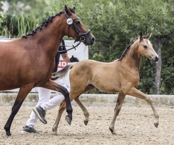 Yegua ponina alemana de 5 años, muy bonita, busca un hogar soñado. Es hija de Cosmopolitan NRW y hermana completa de la yegua de éxito Gründeleinshof Cosmolina (ganadora doble de DSP en doma y salto en libertad). Polly ha estado en nuestra posesión desde que tenía 1 año y ha podido crecer tranquilamente. Ahora busca a su humano ideal para toda la vida. Nos ha regalado 2 maravillosos potros y está lista para mudarse de inmediato.