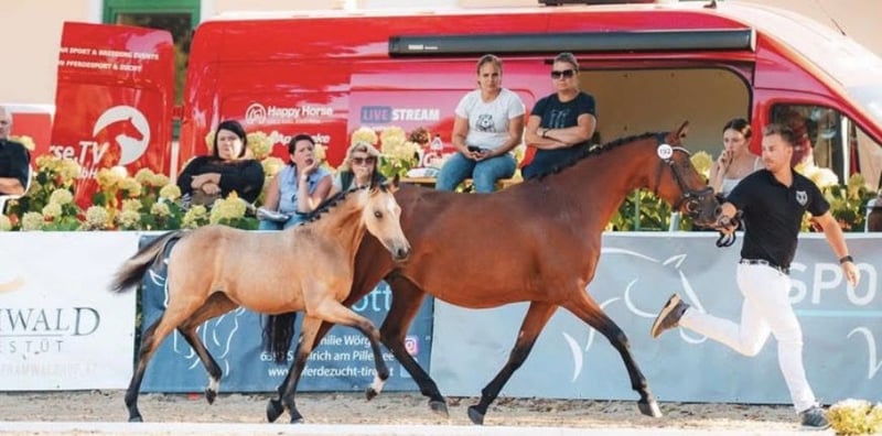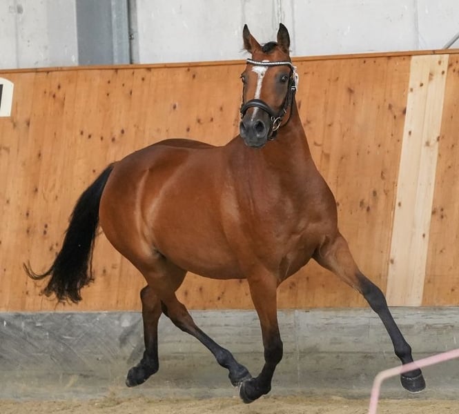 Beautiful 5-year-old German Riding Pony mare seeking her dream home! She is a daughter of Cosmopolitan NRW and full sister to the successful mare Gründeleinshof Cosmolina (twice DSP Free Jump and Free Run champion). Polly has been in our possession since she was 1 year old, allowing her to grow up calmly, and she is now ready to find her lifelong partner! She has given us two wonderful foals and is available for immediate transfer!
