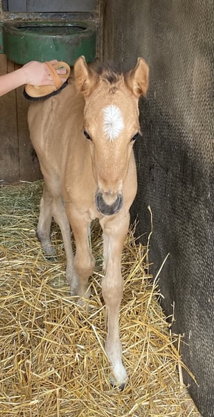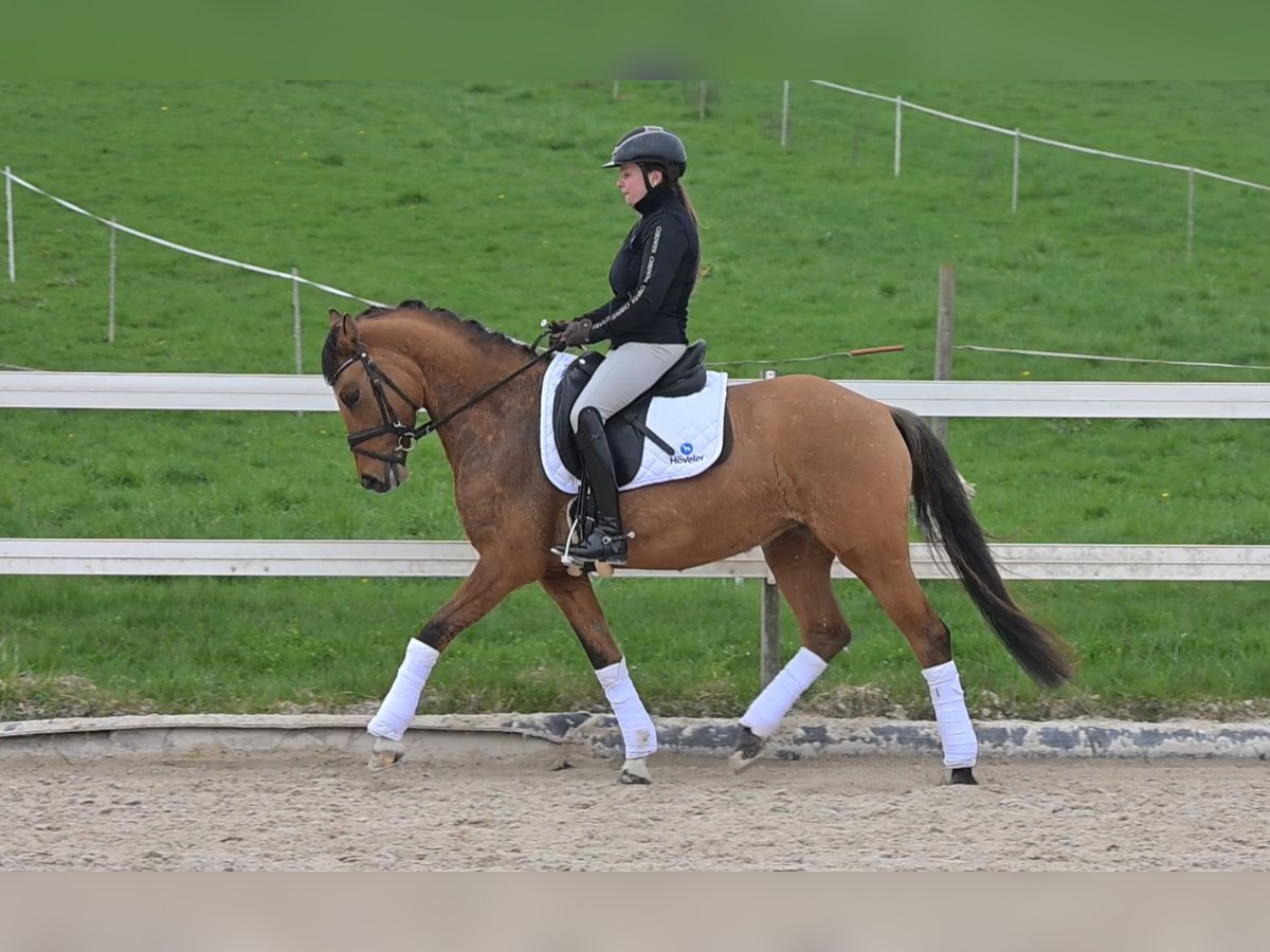 Direct from the breeder: Stylish 6-year-old dressage pony up to L level, very confident in lessons, rideable, and well-behaved. Chica is the ideal competition pony for collecting ribbons. She has three good basic gaits, is easy to sit, and has a wonderful temperament: a future FEI pony in the making. At home, she enjoys everything: dressage training, hacking, jumping gymnastics, quadrille, carnival rides, and cuddling. From the beginning, Chica has been very people-oriented, straightforward, and rideable. Whether at home, during training sessions, or at competitions, she remains calm, eager to perform, and resilient under pressure.