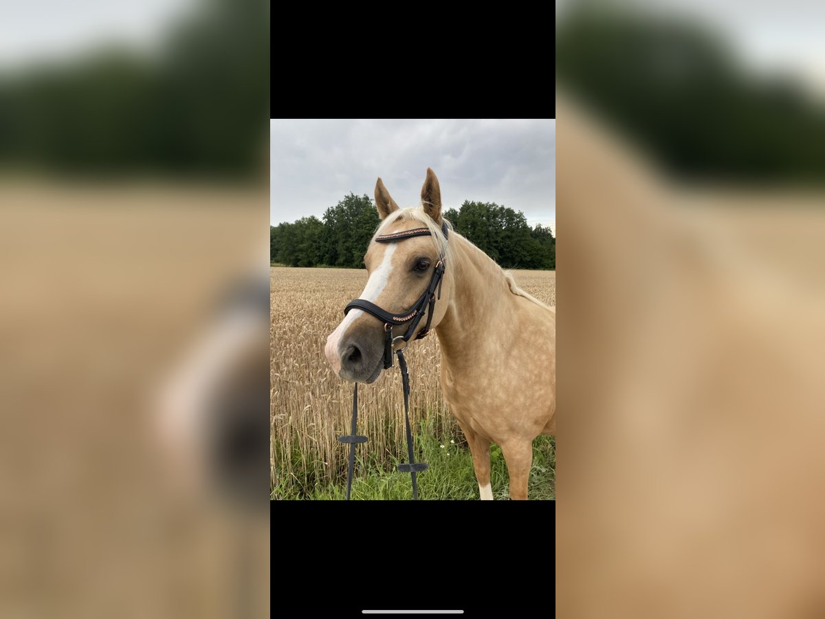 Verkaufe wegen Reitsportaufgabe meine 7 Jährige Deutsche Reitponystute Goldmarie. Sie ist eine sehr sensible und feinfühlige Stute die aber trotzdem Konsequenz und Struktur braucht. Ich habe sie seit Jährling, sie stand bei mir immer im Offenstall, ist sehr sozial und braucht den Auslauf. Boxenhaltung akzeptiert sie zwar, sie wird aber schnell ungeduldig und fängt an an der Türe zu klopfen usw. 24h Heu funktioniert leider auch nicht so gut, ich kann ihr aber leider nichts anderes bieten und daher war sie bei mir immer viel zu dick. Sie braucht ebenfalls begrenzten Weidegang, typisch Pony eben. Sie wurde schonend angeritten , ist sehr fein an den Hilfen wurde aber das letzte Jahr fast nur vom Boden aus gearbeitet bzw ausgeritten. Geht alleine und in der Gruppe ins Gelände, ist aber teilweise schreckhaft. Generell eher nichts für Anfänger oder Kinder, man sollte schon sattelfest sein und Erfahrung mit jungen Pferden haben. Sie hatte 2024 eine Plazentitis und dadurch leider eine Totgeburt. Sie wurde dannach gut behandelt und gespült, wir haben sie aber dann nicht mehr gedeckt. Ob man sie zur Zucht verwenden könnte, müsste man vorher ordentlich abklären. Sie ist vorne beschlagen weil unser Gelände sehr steinig und viel Straße ist, beim Hufschmied und Tierarzt verhält sie sich vorbildlich. Hängerfahren ist grundsätzlich kein Problem. Ich verkaufe Goldi nur weil Sie zu schade zum rumstehen ist und einfach immer dicker wird. Vielleicht bekommt sie die Chance bei jemanden der sie schätzt und ordentlich mit ihr arbeit. Bitte keine reinen Preisanfragen, probreiten ist momentan aufgrund des Winters nur bedingt möglich, sie wird mit komplettem Zubehör verkauft. Gerne per whatsapp anfragen, bin telefonisch immer erst ab 15 Uhr erreichbar.
