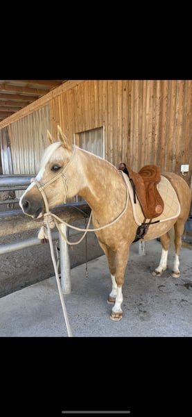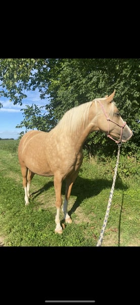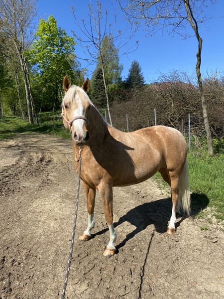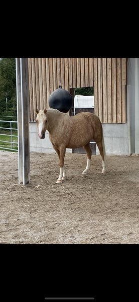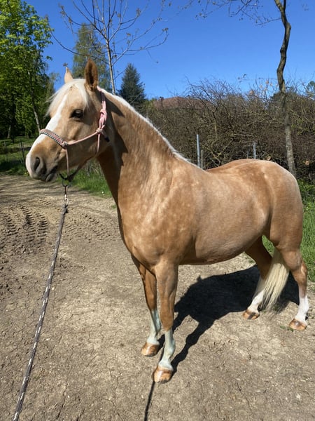 For sale due to a change in my riding plans: my 7-year-old German Riding Pony mare, Goldmarie. She is a very sensitive and intuitive mare, but still needs consistency and structure. I have had her since she was a foal; she has always been kept in an open stable, is very social, and needs regular turnout. She tolerates box stall keeping, but becomes impatient quickly and starts knocking at the door, etc. 24-hour hay is unfortunately not ideal for her, but I cannot offer her anything else, which has resulted in her being quite overweight. She also requires limited pasture turnout, as is typical for ponies. She has been gently backed and is very responsive to aids, but over the past year, she has mostly been worked from the ground or ridden out. She is capable of going alone or in a group into the terrain, but can be somewhat spooky. Overall, she is not suitable for beginners or children; you should be confident in the saddle and experienced with young horses. In 2024, she suffered from placentitis, which unfortunately led to a stillbirth. She was treated and flushed afterward, but we decided not to breed her again. Whether she could be used for breeding should be carefully evaluated beforehand. She is shod in front because our terrain is very stony and includes a lot of road work. She behaves impeccably with farrier and veterinarian. Loading onto a trailer is generally no problem. I am selling Goldi only because she is too precious to stand around doing nothing and keeps gaining weight. Perhaps she will get the chance with someone who appreciates her and works with her properly. Please no price inquiries. Feel free to contact me via WhatsApp; I am only reachable by phone after 3 p.m.