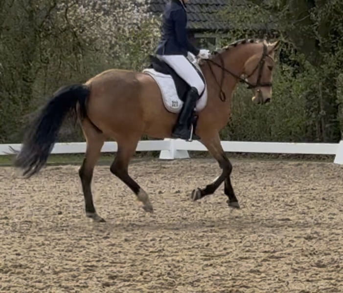Catinka ist eine liebe und vielseitige Reitpony-Stute. Sie ist hochplatziert bis L Dressur und Springen A**. Sie macht sehr schöne Fliegende Wechseln, und geht sehr einfach in seitwärts Gängen. Unkompliziert zu reiten, und weich im maul. Sie ist freundlich im Umgang, gelassen im Gelände und zeigt eine hohe Lernbereitschaft. Der Buckskin-Farbton verleiht ihr ein besonders edles Erscheinungsbild und macht sie zu einem echten Blickfang. Sie ist gesund, regelmäßig geimpft, und entwumt. Diese Deutsche Reitpony-Stute ist perfekt für ambitionierte Reiter, die eine zuverlässige Partnerin für Dressur, Springen, oder Vielseitigkeit suchen. Bei Interesse freue ich mich auf Ihre Kontaktaufnahme! Videos und weitere Bilder gern auf anfrage.