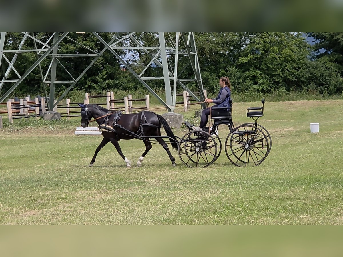 M-siegreiche Rappstute mit Championats-Genetik: Fahrprofi & Kinder-Lehrmeisterin Schweren Herzens suchen wir für unsere 8-jährige Deutsche Reitponystute (Rappe, 142 cm) ein neues Zuhause. Sie vereint eine erstklassige Abstammung mit absoluter Nervenstärke und sportlicher Vielseitigkeit. Diese schicke Rappstute besticht durch ihre exquisite Genetik: Sie stammt ab von Brilliant G aus einer Mutter von Dimension AT. Dass sie diese Leistungsbereitschaft auch vererbt, hat sie 2023 als liebevolle und fürsorgliche Hengstmutter bereits unter Beweis gestellt. Sportliche Erfolge & Ausbildung: Fahrsport: Ihr Haupteinsatzgebiet, in dem sie voll überzeugt. Sie ist in allen Disziplinen (Dressur, Hindernis, Gelände) siegreich in Klasse M. Sie steht voll im Training und ist sofort bereit für die kommende Fahrsaison. Reitsport (Turnier): Eine verlässliche Partnerin für die Kleinsten. Sie ist erfolgreich in WBO-Prüfungen gestartet- ein Schleifenwunder– von der Führzügelklasse über Caprilli bis hin zu E-Dressur und E-Springen. Ausbildungsstand (zuhause): Reiterlich ist sie auf A-Niveau , erste L-Lektionen wurden spielerisch begonnen. Sie ist eine echte „Lebensversicherung“. Unerschrocken, gelassen und absolut kinderlieb. Sie besitzt einen gesunden Kampfgeist im Sport, bleibt aber im Umgang und unter dem Sattel stets ruhig und kontrolliert. Selbstverständlich ist sie regelmäßig geimpft, entwurmt und zahnärztlich kontrolliert. Aufgrund gesundheitlicher Einschränkungen des Besitzers müssen wir uns leider von ihr trennen. Da uns ihr Wohlergehen am Herzen liegt, wird sie inklusive ihres passenden Sattels und der Trense abgegeben. Preis: 20.000 € VHB (inkl. Zubehör) Ein Kennenlernen ist nach Vereinbarung möglich, Probereiten/Fahren mit entsprechenden Kenntnisse. Dafür berechnen wir 30 Euro, die sich beim Kaufpreis wieder verrechnen. Dies ist zum Schutz des Ponys