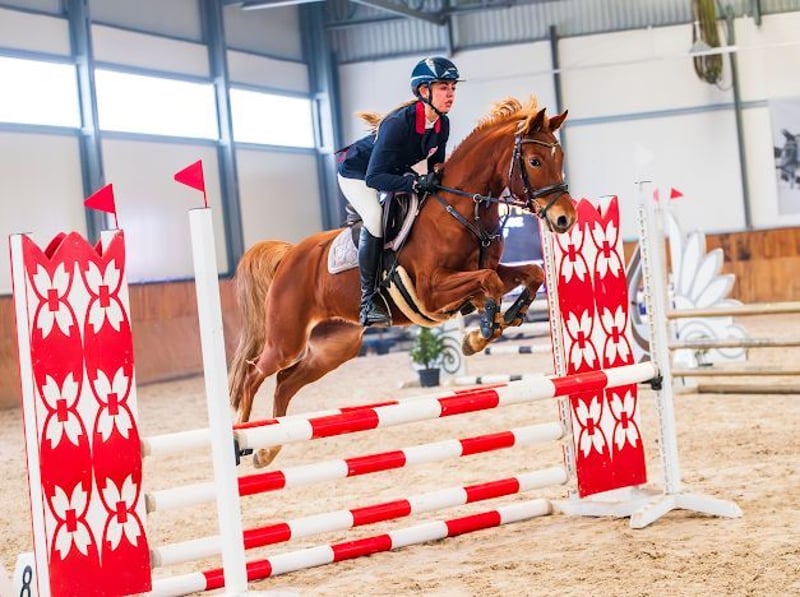 For sale: a beautiful pony mare ready to win. She is 7 years old, 14.1 hh, and competes up to 90 cm, but she has the potential for much more thanks to her impressive jumping ability. She requires a rider with more experience. She has participated in eventing competitions and performed very well. She is free of vices and spooks. Friendly towards other horses. She has a very gentle temperament; easy to handle in daily routines. She stands well for the farrier and grooming, and is not afraid of water. Healthy! We have recent health examinations from this year. Pedigree: sire – Herzkönig NRW; dam – Versace R. The price includes appropriate tack! The pony mare is located in Poland, in the Opole Voivodeship, and is in regular training. For more information and videos, please contact me by phone or WhatsApp: Phone: +48 660 264 421