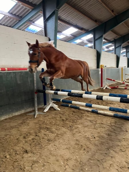 Hallo, aus privaten Gründen muss ich meine Pony-Stute Lotti verkaufen. Lotti ist eine 1,47 m große, 7-jährige Haflinger- / Deutsches-Reitpony-Stute. Sie ist sehr lieb und menschenbezogen, jedoch nicht für Anfänger geeignet. Vom Freispringen bis zum Ausritt kann man alles mit ihr machen. In der Dressur ist sie bis A-Dressur zwei Sternen ausgebildet, im Springen bis 1,00 m – beim Freispringen auch höher. Und hat viel potenziale Vorallem im Springen Ausritte und sogar Baden sind für sie überhaupt kein Problem. Mit Kindern ist sie ebenfalls sehr lieb, testet jedoch gerne mal aus. Sie steht zum Verkauf inklusive komplettem Zubehör: zwei neue Maßsättel (ein Dressursattel und ein Vielseitigkeitssattel), Halfter, Trense usw. Bei Interesse gerne melden – Preis ist verhandelbar.