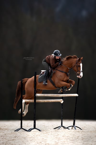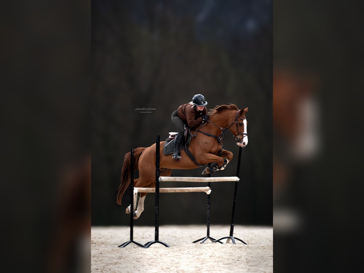 Sport Pony - Chestnut mare, born in 2018, 14.8 hh Offering this beautiful pony for sale, incredibly gentle and easy to handle on a daily basis. She easily completes a 1.20 m course at home. She is a very high-quality and respectful pony who does not flinch at anything. She also rides alone on hacks, loads into the trailer, and lives out in the field. She has a passport and a veterinary health certificate. Price negotiable For more information, please contact +33 7 67 17 73 07
