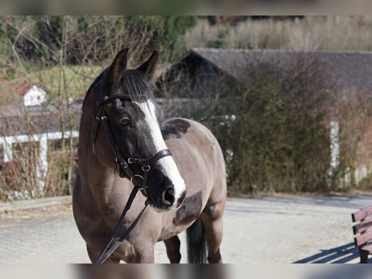 Zum Verkauf steht der 10-jährige Rappwallach „Von und Zu Valido“ mit einem Stockmaß von ca. 153 cm. Valido ist ein absolutes Verlasspony und eignet sich ideal als Familienpony, sowie für Kinder, Jugendliche oder aber auch als Damenpferd. Besonders sein Mut, sein Ehrgeiz und seine außergewöhnliche Verlässlichkeit – gepaart mit enormer Gelassenheit und sehr guten Grundgangarten zeichnen ihn aus . Er hat einen fleißigen Schritt, eine schöne Trabmechanik und einen großen, bergauf gesprungenen Galopp. Valido ist vielseitig ausgebildet und wurde in der Dressur, im Springen sowie in der Vielseitigkeit gefördert und vorgestellt. Er zeigt sich dabei stets motiviert, leistungsbereit und möchte es seinem Reiter immer recht machen. Auch im täglichen Umgang überzeugt er auf ganzer Linie: Er ist schmiede- und verladefromm, immer für eine Kuscheleinheit zu haben und absolut unerschrocken. Er wird außerdem regelmäßig an der Doppellonge gearbeitet, freigesprochen und ist dabei immer motiviert bei der Sache. Unarten sind bei ihm keine bekannt. Im Gelände ist er sowohl alleine als auch in der Gruppe absolut zuverlässig und unkompliziert in allen drei Grundgangarten zu reiten. Aktuell steht er problemlos mit einer Stute und ihrem Fohlen auf der Koppel und zeigt sich dabei äußerst sozial und verträglich. Dieser ehrliche und leistungsbereite Wallach ist ein zuverlässiger Partner für ambitionierte Nachwuchsreiter ebenso wie für Freizeitreiter, die ein sicheres und vielseitiges Pony suchen. Der Verkauf erfolgt aus privaten Gründen.