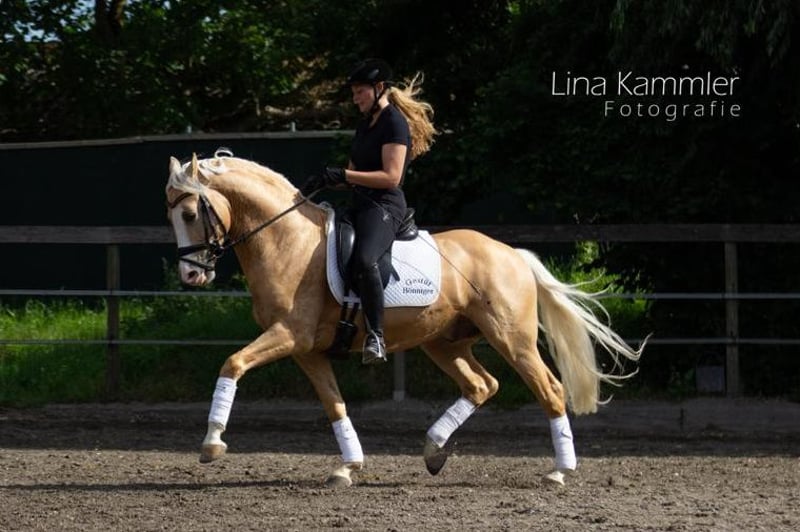 **Verkaufsanzeige: Deutsches Reitpony Wallach** Zum Verkauf steht ein wunderschöner Deutsches Reitpony Wallach, geboren im Jahr 2014. Mit einem Stockmaß von 148 cm ist er der ideale Partner für ambitionierte Reiter, die sowohl in der Dressur als auch im Freizeitbereich aktiv sein möchten. Seine auffällige Palomino-Färbung und sein freundliches Wesen machen ihn zu einem echten Blickfang. Er ist brav im Umgang, gut erzogen und hat bereits erste Erfahrungen im Dressursport gesammelt. Mit seiner positiven Einstellung und Lernbereitschaft ist er bestens geeignet für Reiter, die sich weiterentwickeln möchten. Der Wallach ist gesund, regelmäßig geimpft und entwurmt. Er kennt den Umgang mit anderen Reitponys und ist sowohl in der Halle als auch im Gelände brav. Bei Interesse oder für weitere Informationen stehe ich gerne zur Verfügung. Besuchen Sie uns und überzeugen Sie sich selbst von diesem tollen Pony!