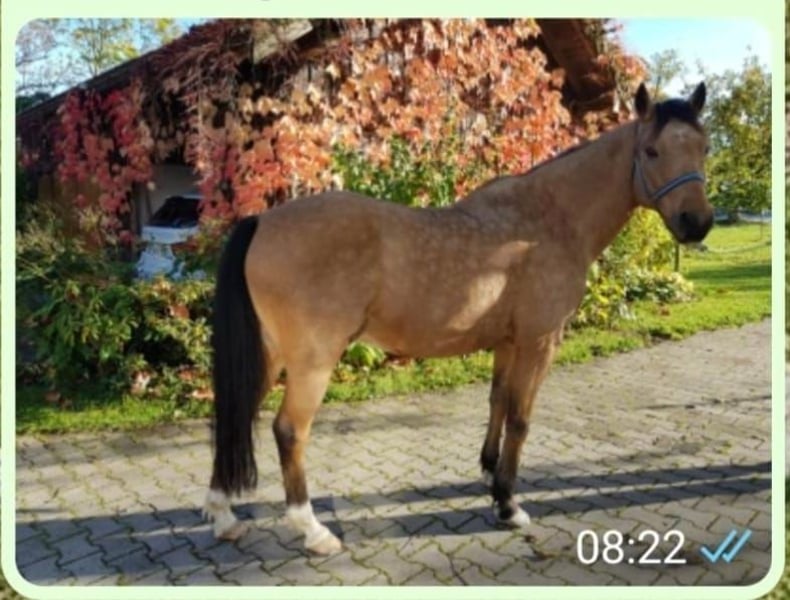 Schweren Herzens suchen wir für unseren Ponywallach Falko ein neues, liebevolles Zuhause. Aus persönlichen Gründen können wir ihm leider nicht mehr die Aufmerksamkeit schenken, die er verdient. 🧬 Allgemeine Daten: • Name: Falko • Alter: 14 Jahre • Geschlecht: Wallach • Ausbildungsstand: Bis M ausgebildet gefahren , Reiterlicherstand aktuell auf A-Niveau • Einsatzbereich: Freizeit, Dressur, Bodenarbeit gefahren • Stockmaß: 1,48 m 💪 Beschreibung: Falko ist ein sehr liebenswürdiges und ehrliches Pony, das stets Freude an der Arbeit zeigt. In den letzten zwei Jahren hat er hauptsächlich sein Leben auf der Weide genossen und wurde nur gelegentlich geritten. Er ist brav im Umgang, menschenbezogen und unkompliziert im täglichen Handling. Zubehör kann gerne mit erworben werden :)