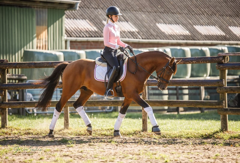 Exklusives deutsches Reitpony mit herausragender Qualität Wir präsentieren einen außergewöhnlichen deutschen Reitpony Wallach, dem eine vielversprechende Zukunft bevorsteht. Steendieks Magic Mike besticht nicht nur durch drei erstklassige Grundgangarten, sondern auch durch einen makellosen Charakter und eine bemerkenswerte Arbeitseinstellung. Er bringt alle Voraussetzungen mit, um ein zukünftiges Erfolgssportpony zu werden. Geboren im Jahr 2022, entstammt dieser Hengst der renommierten Väter Morgensterns D'Artagnan x FS Chambertin, was ihm eine exzellente Abstammung für den Dressursport verleiht. Ponyhengst Morgensterns D'Artagnan (Vater) ist am 13.02.2021 in Elmshorn gekört worden und ist der Sohn des FS Don't Worry aus der FS Carmelita. (Muttervater) FS Chambertin hat sich als einflussreicher Vererber etabliert. Mit über 130 Nachkommen hat FS Chambertin zahlreiche gekörte Hengste hervorgebracht, darunter Tackmann's Cantuccini und Steendieks Cahmbertin Jr., die beide mit über 30 Platzierungen im Sport glänzen. FS Chambertin's Vererbungskraft und die Vielseitigkeit seiner Nachkommen machen ihn zu einem wertvollen Bestandteil der modernen Ponyzucht. Obwohl er erst seit wenigen Wochen unter dem Sattel ist, meistert er jede neue Situation mit bemerkenswerter Souveränität. Er zeigt keinerlei Unarten wie Bocken oder Steigen und präsentiert sich für sein Alter als bemerkenswert unerschrocken und abgeklärt. Nichtsdestotrotz handelt es sich um ein dreijähriges Pony, das einen erfahrenen Reiter benötigt. Aufgrund seines gutmütigen Wesens wäre er jedoch auch als zukünftiges Kinderpony vorstellbar. Seine aktuelle Größe beträgt ca. 1,45 m. Mit der richtigen Förderung wird dieses Pony zweifellos eine vielversprechende Karriere im Dressursport einschlagen. Ein sehr guter und lückenloser TÜV von April liegt ohne Befunde vor. Für weitere Informationen stehen wir Ihnen gerne zur Verfügung.