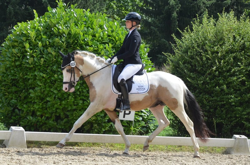 Dieser 3 jähr. Wallach in der Farbe: Bucksin-Schecke punktet nicht nur durch sein besonderes Erscheinungsbild und 3 guten GGA‘s, sondern auch durch seinen liebenswerten und leistungsbereiten Charakter. Er wurde schonend bei uns angeritten und zeigte sich stets vorbildlich. Bei seinem ersten Turnierstart war er ausgesprochen unkompliziert und brav. (WN 7,2) Ein tolles Nachwuchspony für einen feinfühligen Reiter. Aufgrund des Alters noch kein reines Anfänger/Kinderpony. Er schmiede- und verladefromm. Regelmäßig entwurmt und geimpft. Ein aktueller Röntgentüv ohne Befund liegt vor - keinerlei Vorerkrankungen o.Ä. Bitte rufen Sie für weitere Informationen an: +49 162/9232300