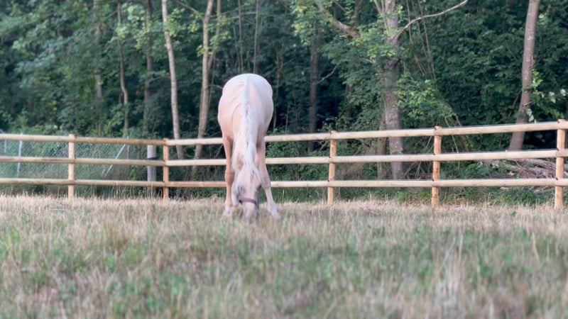 Ausdrucksstarker und schicker Palomino Wallach von Rivers Dancing as (Riverdance x Orchard Limb-Lopper) a.d. Fienchen (Freeman T. Porter x Maritim II). Er ist sehr Menschen bezogen und mit drei sehr guten gga. ausgestattet weshalb er die Auszeichnung prämienfohlen erhielt. Außerdem ist er der absolute mädchentraum durch seine Farbe und seine vier weißen Füße. Seine Mutter Fienchen war 2010 bei den 5 jährigen springponys in der kl. A** auf den Bundeschampionaten in Warendorf an den Start gegangen. Seit dem Juni 2020 ist Fienchen nun in unserem Team sie war bis 2023 ein ganz toller Lehrmeister. Im Mai 2023 hat sie uns dann dieses Qualitätvolles Hengstfohlen von Rivers Dancing as. Sein Vater Rivers Dancing as aus dem Jahrgang 2016 in der Sonderlackierung Cremello, ist 2018 auf der ZfdP Körung in Kreuth Siegerhengst geworden. Er ist bereits in Dressurprüfungen der kl. L siegreich und auch schon zahlreich platziert. Video auf Anfrage! Verkauf aufgrund Bestandsreduzierung!