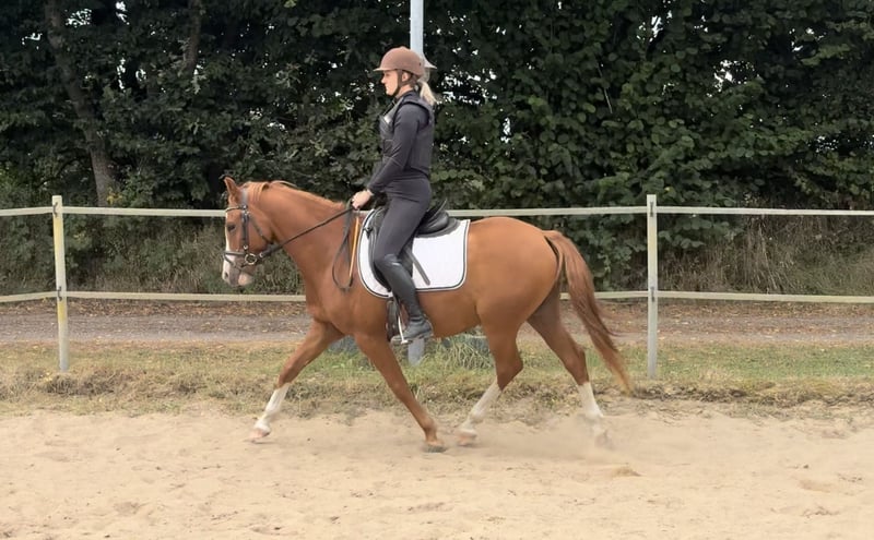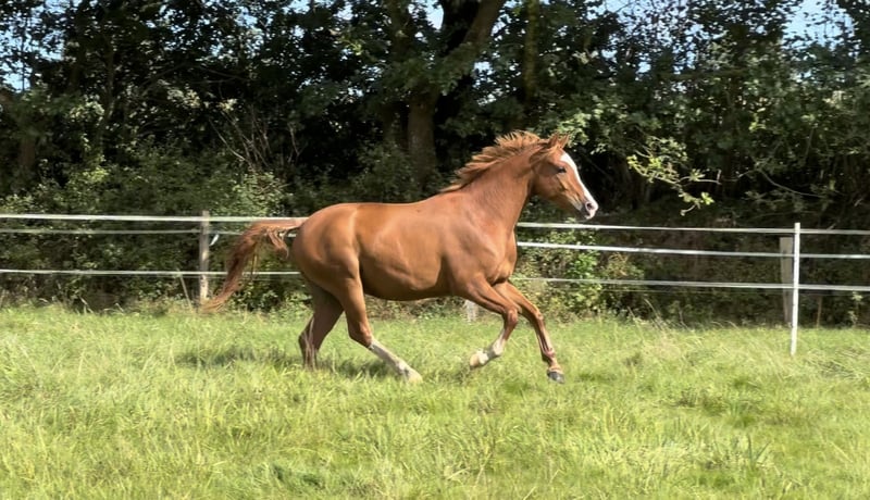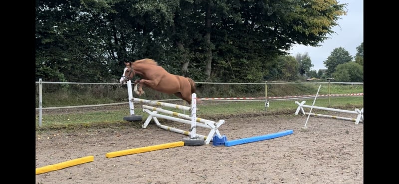 -Privatverkauf- Alter: 4 Größe: aktuell 1,43m Vater: Neverland Muttervater: Champion de Luxe Geeignet für: sehr talentiert für Dressur, Springen, Vielseitigkeit Angeritten Video: https://youtu.be/0u0LlqYv4O0?si=J37RPJEToVryEGts Aufgrund von Zuchtaufgabe steht ein in 05.2021 geborener sehr talentierter Reitponywallach aus eigener Zucht von Neverland aus einer Champion de Luxe Staatsprämienstute zum Verkauf. Sein Halbbruder ebenfalls aus eigener Zucht wurde gekört. Der Wallach ist seit ca 4 Wochen schonend angeritten und war in dieser Phase vorbildlich brav. Er lässt sich gut in jeder Gangart Zirkel und ganze Bahn reiten. Er besticht durch drei sehr gute Grundgangarten und einer außerordentlich guten Arbeitsbereitschaft. Zusammen mit altersentsprechender Neugier, Aufgeschlossenheit und ponybedingte Frechheit machen ihn zu einem besonders tollen Sportpartner mit viel Go. Dadurch ist er sehr gut als Kinderpony geeignet, doch nicht für Reitanfänger zu empfehlen. Aktuell misst er 1.43m. Er ist in einer altersgemischten Wallachherde mit einem weiteren Gleichaltrigen zusammen in Offenstallhaltung aufgewachsen. Er ist regelmäßig geimpft. Die Zähne wurden gerade erst im Juli ‘25 gemacht. Ebenso ist er frisch entwurmt. Regelmäßige Vorstellung beim Schmied ist selbstverständlich. Wir bitten von Händleranfragen abzusehen.