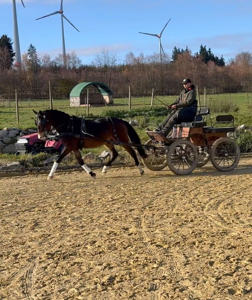 Im Auftrag zu verkaufen: Dai Dai ein 4-jähriger New Forest Pony Wallach mit einer Größe von 1,45 m. Er ist bereits gefahren. Abstammung: Sirocco‘s Kensington * Havehoeve‘s Floris Er überzeugt vorallendingen durch seinen entspannten Charakter & seine Lernwilligkeit. Super brav und engagiert im Training, ist er mit guten GGA ausgestattet. Videos sind vorhanden. Interessiert? Dann melde dich gerne für mehr Informationen per PN oder telefonisch unter +4917634635813.🐴💫