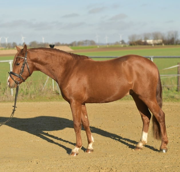 ** Reitpony Wallach Namir** Entdecken Sie das Traumpony Namir – ein wunderschöner deutscher Reitpony Wallach, der mit seinem charmanten Wesen und seinem beeindruckenden Exterieur überzeugt! Namir ist nicht nur ein echter Kumpel, sondern auch ein vielseitiger Partner, der jede Menge Spaß beim Reiten bietet. **Highlights:** - **Vollständige Röntgenbilder** ohne Befunde vorhanden. - **Lernwillig und brav**: Ideal für Kinder und Anfänger. Namir zeigt sich beim Reiten äußerst gelassen und brav. - **Unerschrocken und cool** in jeder Lebenslage – sei es beim Ausreiten alleine oder in der Gruppe. Im Sommer genießt er die Zeit auf der Wiese in einer harmonischen Wallachherde und zeigt sich dort sehr verträglich. - **Bodenarbeit und Vertrauensübungen** sind für ihn ein Kinderspiel – er ist stets motiviert und bereit zu lernen. **Besonderes Angebot:** Bei sofortiger Mitnahme erhalten Sie 5% Rabatt auf den Verkaufspreis! **Testmöglichkeit:** Überzeugen Sie sich selbst von Namirs Fähigkeiten! Wir bieten Ihnen die Möglichkeit, ihn eine Woche lang zu testen. Diese Probewoche kann von erfahrenen Trainern begleitet werden, und Sie können Unterricht mit dem Testen kombinieren. Beachten Sie bitte, dass eine Probegebühr anfällt, die nicht vom Kaufpreis abgezogen wird. **Probereiten:** Gerne können Sie Namir bei uns anschauen und ausprobieren. Die Kosten für das Vorreiten oder Probereiten betragen 30 € pro Person. Lassen Sie sich diese Gelegenheit nicht entgehen – Namir wartet auf seinen neuen besten Freund!