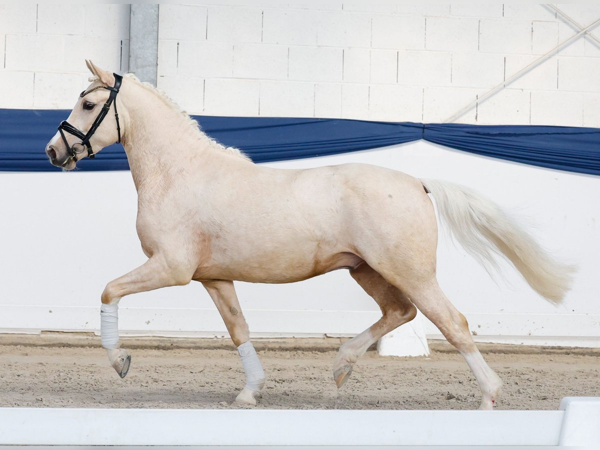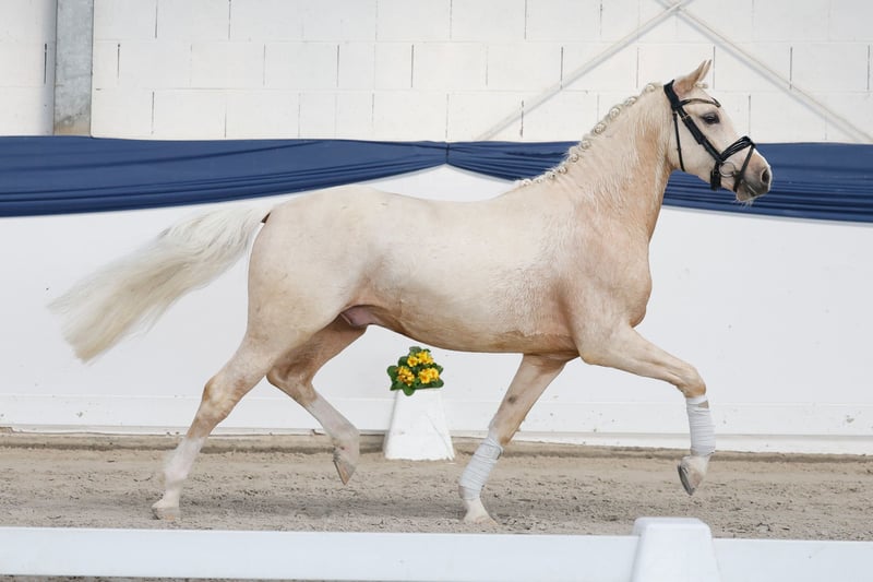 In unserer Kollektion stehen streng selektierte Youngster f�r alle Anspr�che: Ausbildungs-, Zucht- und Kinderponys Hier gelangen Sie zur Gesamtkollektion: https://ponyforum.auction Dieser typvolle Palominowallach ist bereits vierjährig und altersentsprechend auch schon weit entwickelt mit genug Kraft und Stabilität im Körper. Dressed in Blond ist bereits in die Ausbildung zum Reitpony gestartet und er kennt Longenarbeit und den Sattel auf seinem Rücken. Er ist ein aufmerksames und kooperatives Pony, das schnell versteht. Sein Vater Dressed in Gold, selbst Prämienhengst und Vize-HLP-Champion, ist einer der letzten Söhne des bedeutenden Dressman I. Obwohl Dressed in Gold nicht viele Nachkommen hat, setzten sich seine Kinder immer wieder mit beeindruckenden Erfolgen in Szene! Unter ihnen zählt sicherlich der in Frankreich beheimatete Dream in Cream zu den Top-Ponys: er gewann das Championat in Saumur und ist aktuell in Dressurprüfungen bis zur Klasse S erfolgreich! Und eben dieser Dream in Cream stammt aus dem direkten Mutterstamm unseres Auktionsponys, die beiden sind ziemlich blutverwandt gezogen. Vielleicht ein gutes Omen für die Ausbildung unseres Dressed in Gold! Direkt vom Züchter.