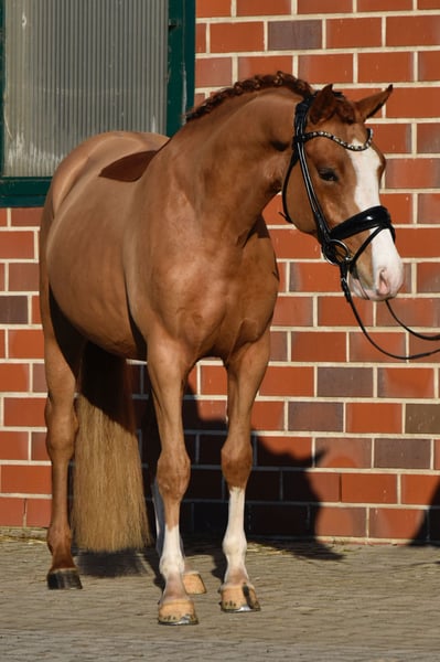 Zu Verkauf steht dieser bildschöne 4-jährige, ca 146cm großer Wallach von Champion de Luxe x Golden Highlight. Champion ist sowohl im Umgang als auch unter dem Sattel artig. Er ist im letzten Sommer angeritten worden und steht sicher und leicht an den Hilfen, stets motiviert und fleißig. Mit drei sehr guten Grundgangarten verspricht er ein tolles Dressurpony zu werden. Champion macht ebenfalls einen sehr guten Freisprung und ist schon einige Male unter dem Sattel gesprungen worden, woran er sichtlich Freude hat. Hier wächst ein toller Allrounder heran, mit dem die weitere Ausbildung sicher Spaß machen wird! Es liegen gute Röntgenbilder vor. ‼️Bei Interesse und für Videos bitte ausschließlich telefonisch oder über WhatsApp unter 017621729218 melden. Anfragen über ebay oder ehorses werden nicht beantwortet.‼️ Das Pferd wird nicht zur Verfügung gestellt und kann auch nicht auf Raten gezahlt werden.