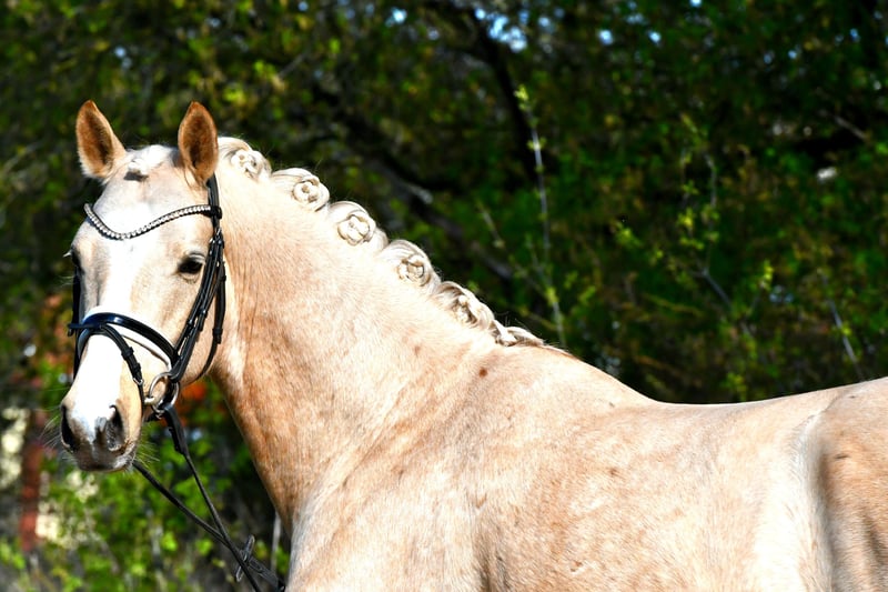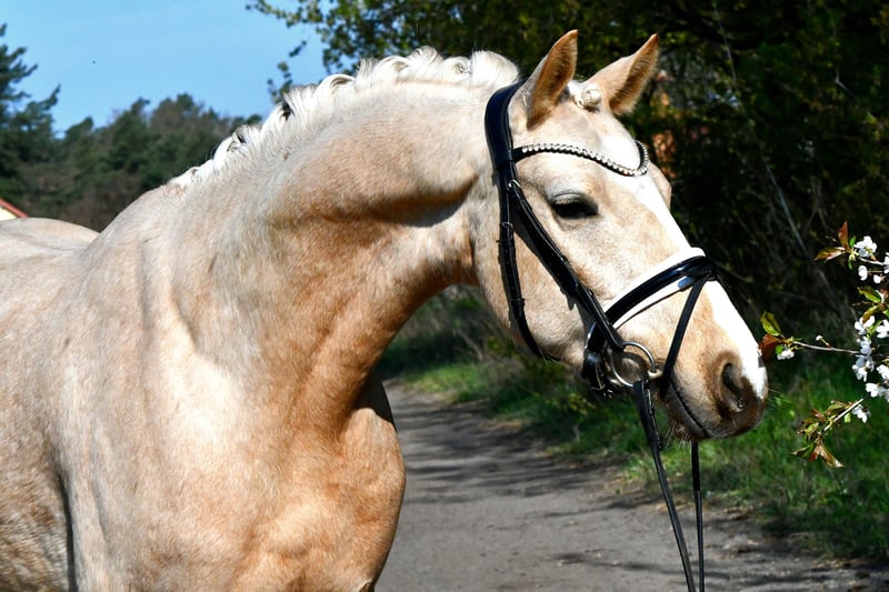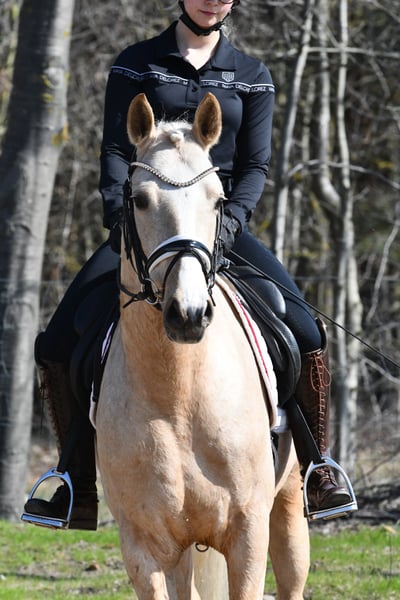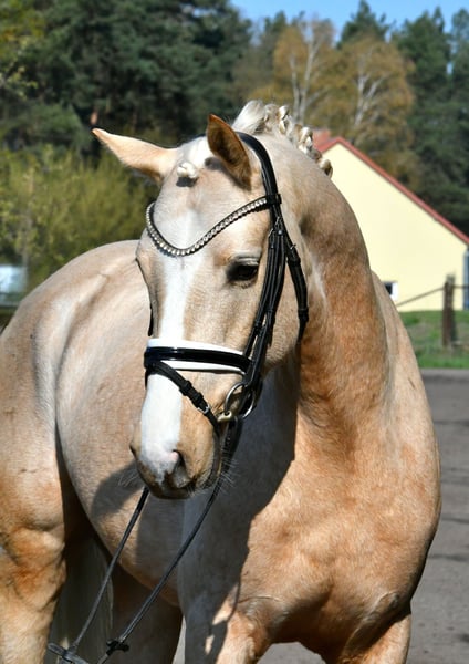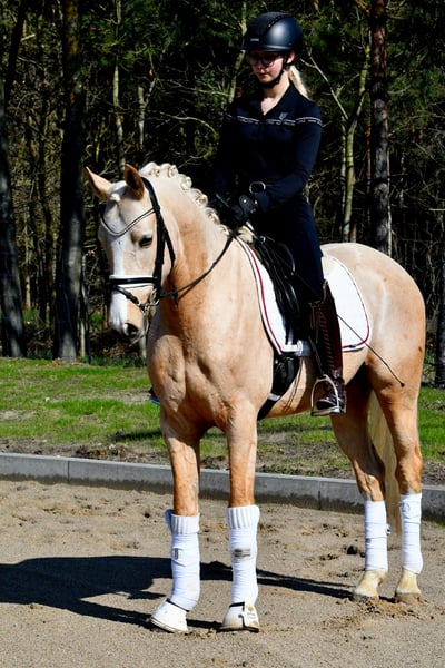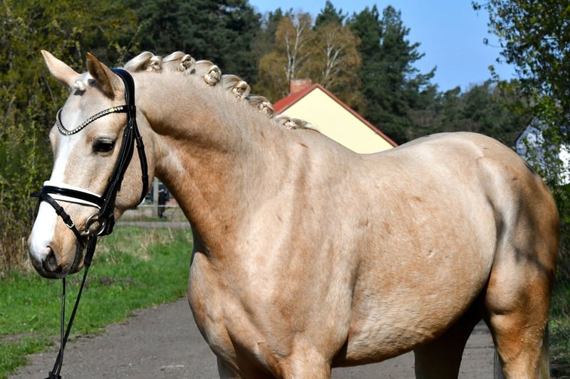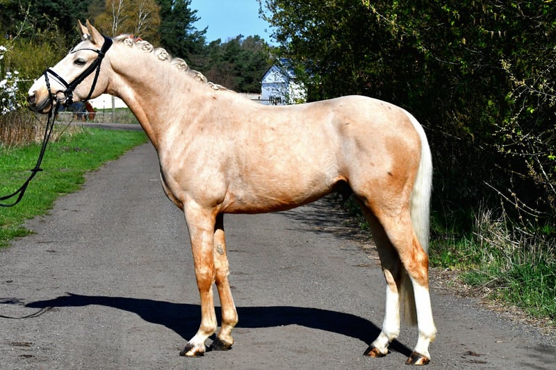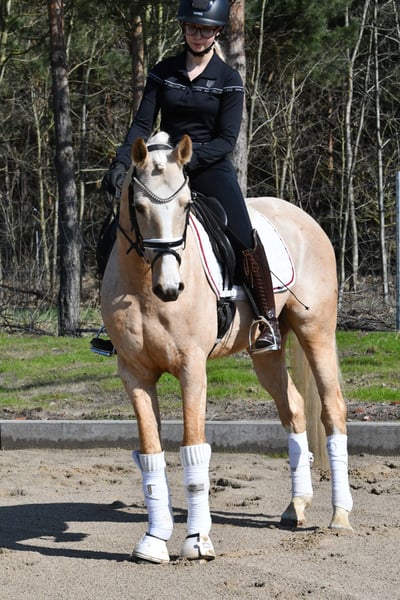 Dieser 4 jährige Palominowallach v. Mellis Dior kommt direkt vom Züchter zu uns und wurde hier letztes Jahr schonend angeritten- er befindet sich auf Dressurpferde A Niveau und ist startklar für die Turniersaison in Jungpferdeprüfungen( Starts zeitnah geplant). Sehr gute Grundgangarten bei tollem Grundschwung im Trab und bester Rittigkeit empfehlen diesen Goldschatz als qualitätsvolles Ausbildungspony. Er kennt auch schon kleine Sprünge, Bodenarbeit, kleine Runden ins Gelände etc. - kein stumpfes Schulpferd, aber immer lieb und händelbar .Eine guter, aktueller TÜV aus März 2026 liegt vor- gerne einen Termin zum Probereiten vereinbaren!