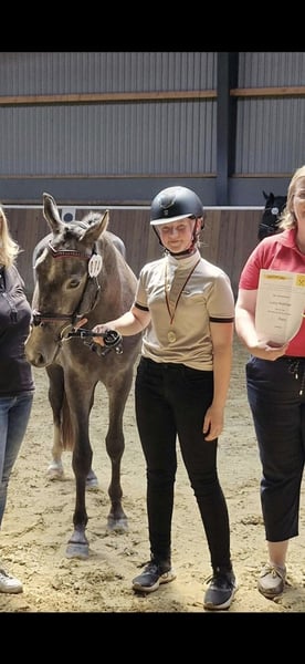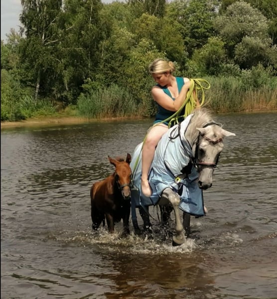 Cavalino – Youngster with Top Pedigree & Charisma to Fall in Love With Our charming German Riding Pony gelding (by Calimero x Bazar), born on May 31, 2022, is now looking for his forever person. Cavalino combines outstanding lineage, work ethic, and a wonderful character – a versatile young horse with heart and a bright future! As a foal, Cavalino already displayed his special presence: He was rated as outstanding at the foal show, praised for his type, movement, and expression. Additionally, he was brave in water as a foal – he went swimming (see photos!) and demonstrated his nerve and curiosity. Today, Cavalino is solidly trained in dressage and already shows promising jumps under saddle. He is talented, brave, and always motivated, whether in the arena, indoor riding hall, or out in the field. Cavalino works with joy, remains clear-headed, honest, and gentle in his manner. Earlier this year, he won a young rider competition together with a 12-year-old girl – another sign of his calm, people-oriented, and trusting nature. Cavalino is a true all-rounder: whether dressage, jumping, leisure riding, competitions, or trail riding – he performs excellently everywhere. We see him as an ideal partner for both adults and children, perhaps even for a mother and child duo. His size comfortably suits riders up to approximately 170 cm. For those who enjoy training a youngster and growing together, Cavalino offers an honest, motivated partner with great potential. He is currently in training but can be visited and test ridden at any time. Price: €17,000 negotiable - Price is secondary! (We are happy to negotiate for the right home!) For further questions, we look forward to your messages! Best regards.