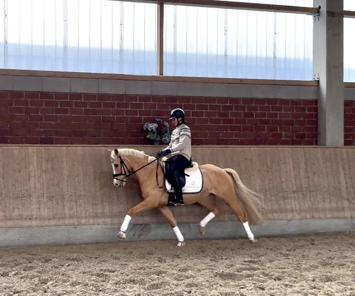 This beautiful Palomino gelding impresses not only with three very good basic gaits but also with a great temperament. Due to his high rideability and ideal size, he is certainly a great young pony for FEI sport. A good breeding inspection is already available.